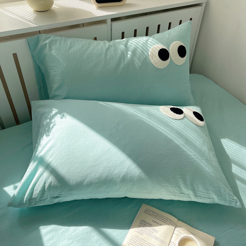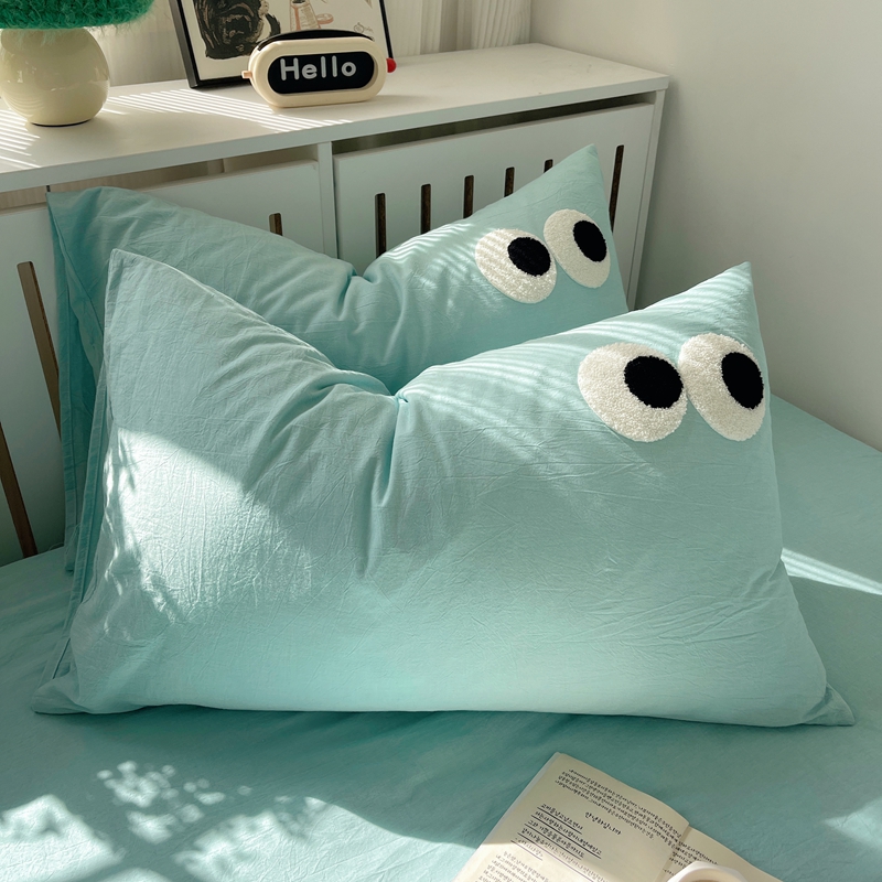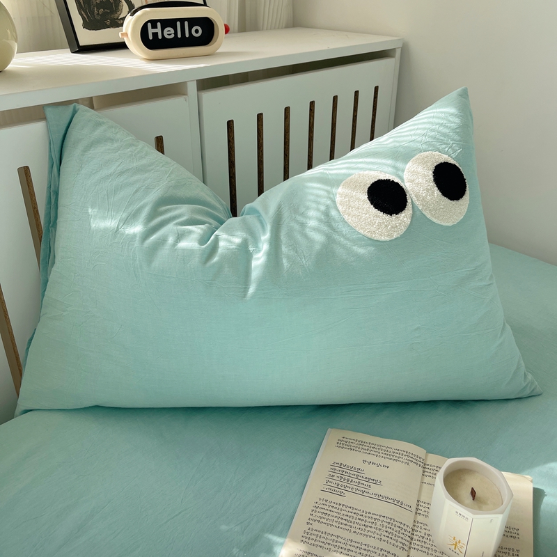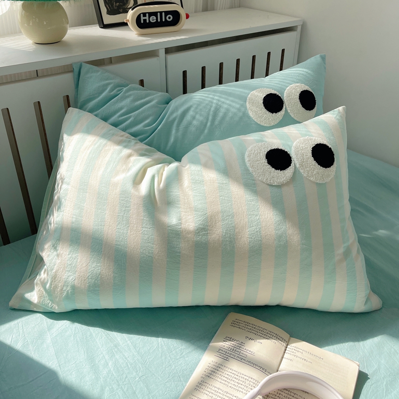 丽涵家纺 2024新款全棉色织水洗棉单品枕套-毛巾绣大眼系列 48*74cm枕套/只 ins混搭3-薄荷绿