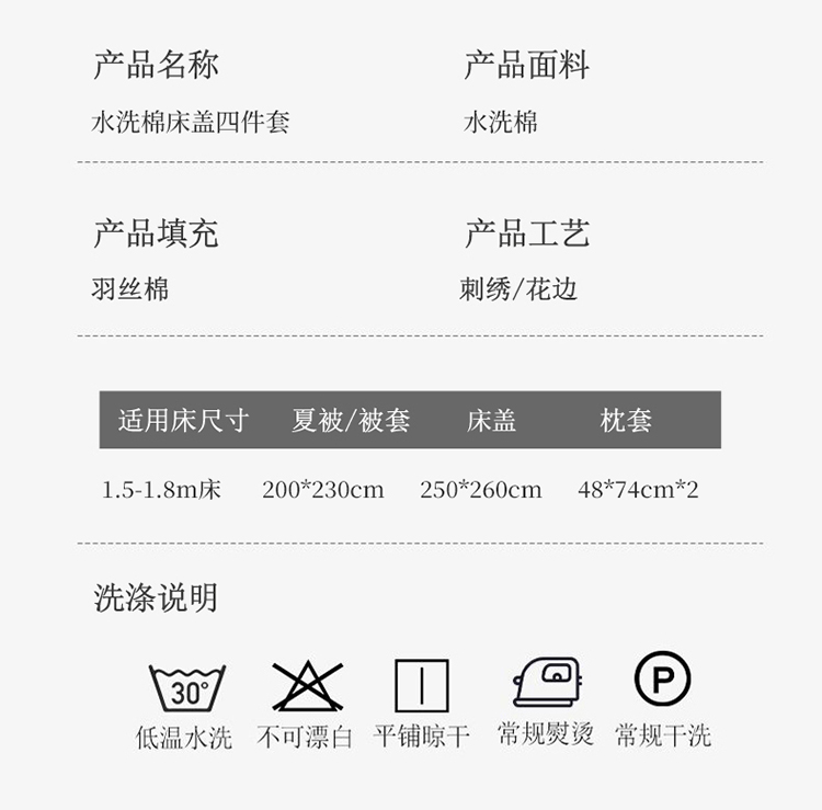 夏被款床盖四件套(夏被+床盖+枕套一对)