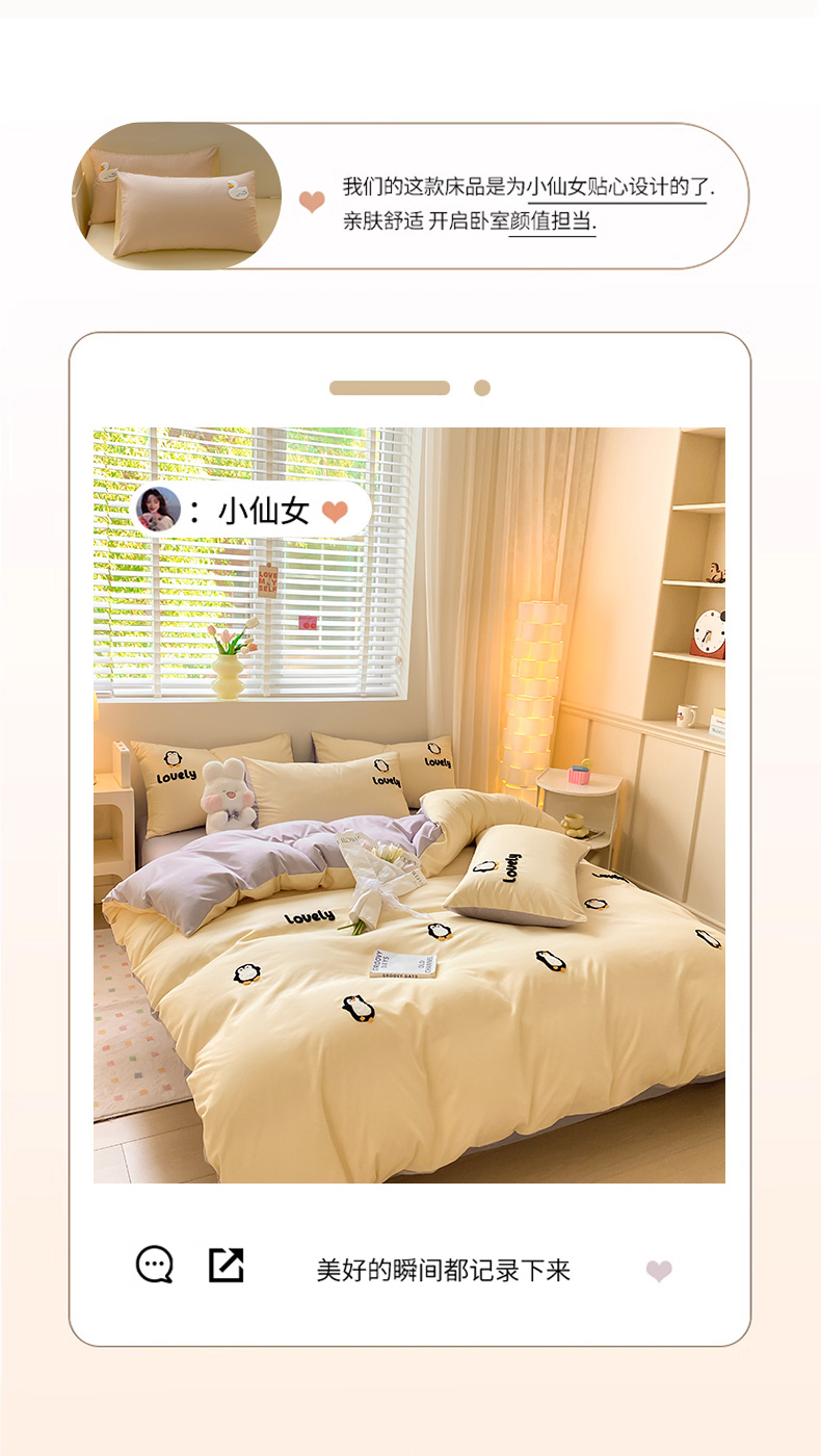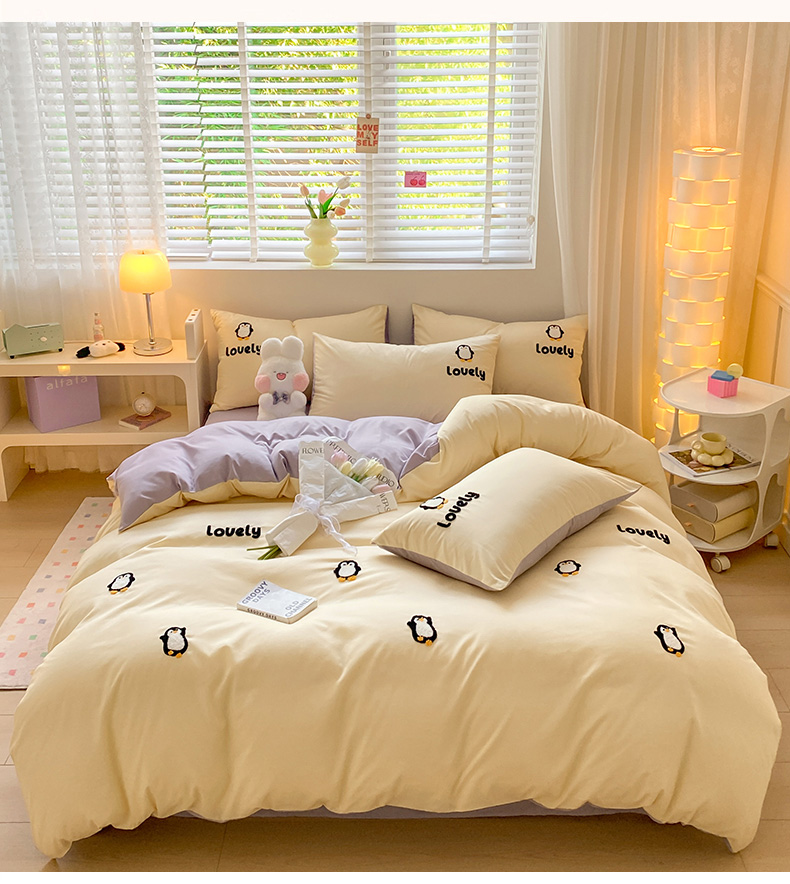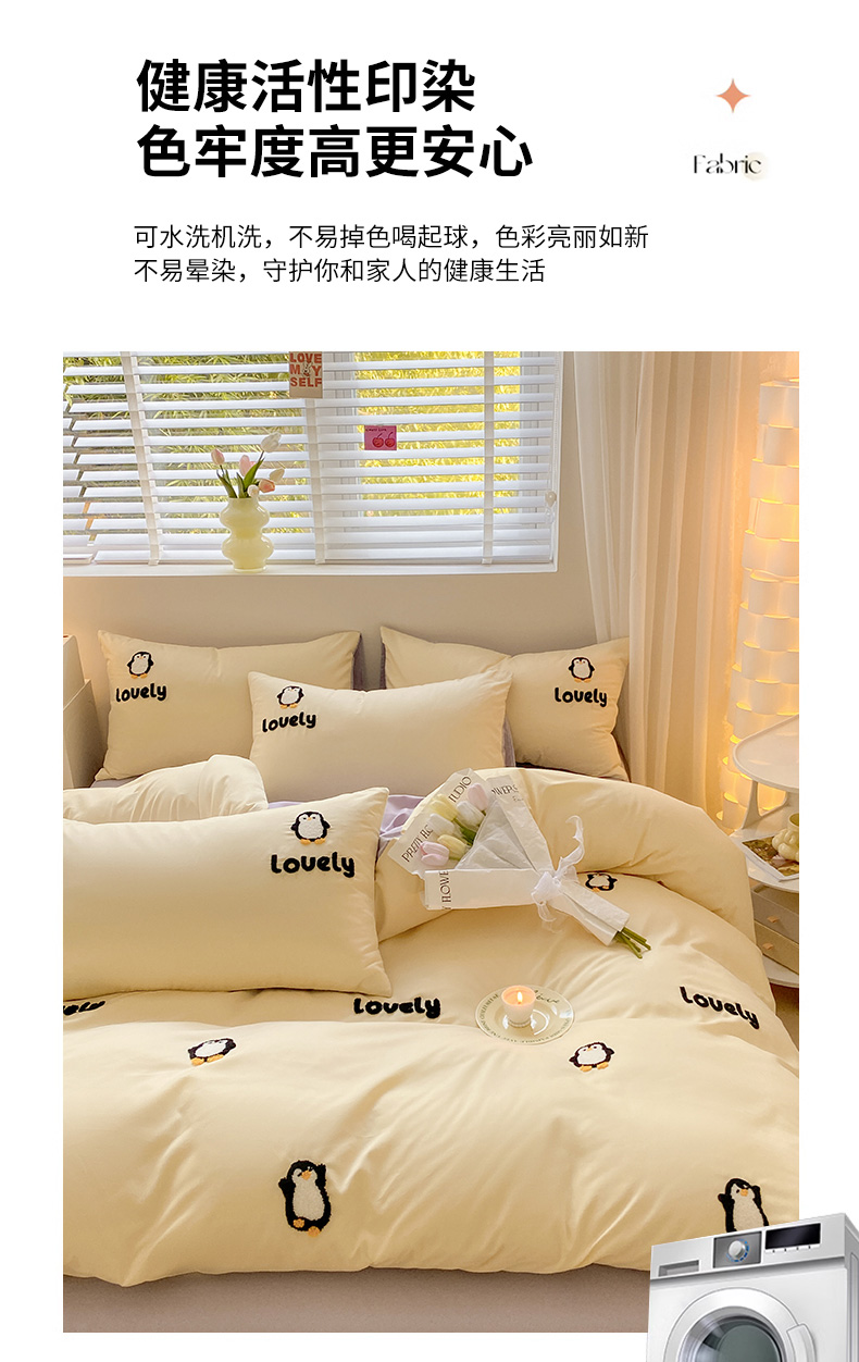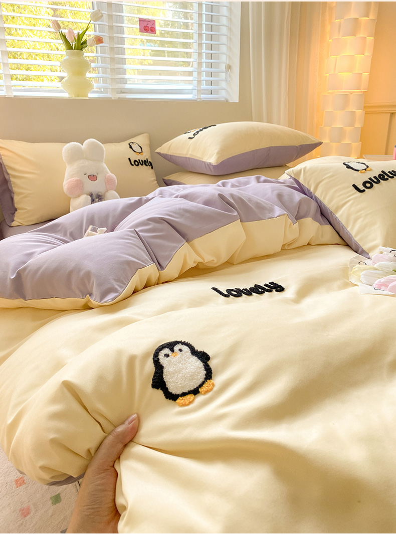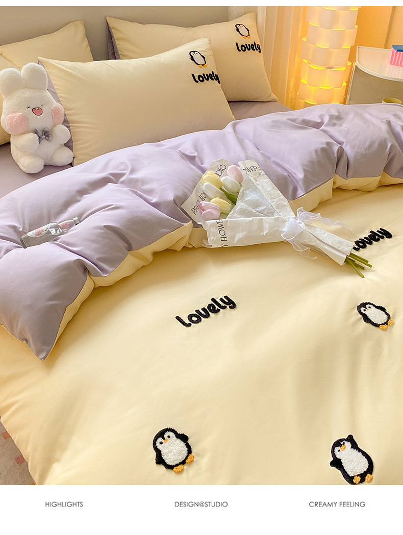 当前位置: 91家纺网 > 商品网购 > 床品套件 > 四件套 > 毛巾绣四件套 > 眠帛 2024新款亲肤棉卡通毛巾绣四件套 企鹅蛋-奶黄浅紫