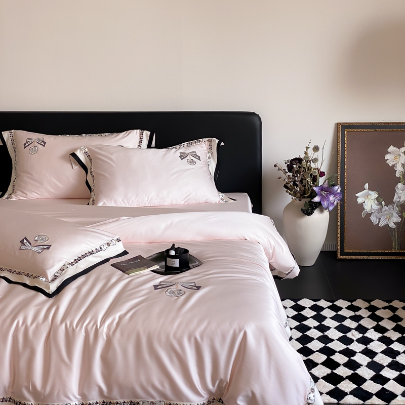 商品名称:馨蕊家居 2024新款LF超柔系列60天丝棉四件套-香馥丽 香馥丽-微醺粉