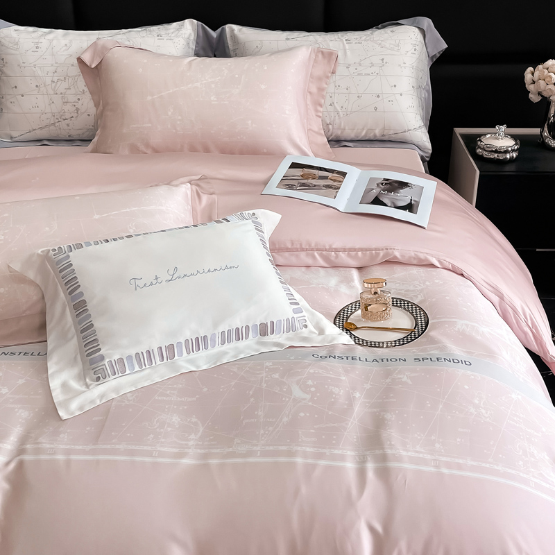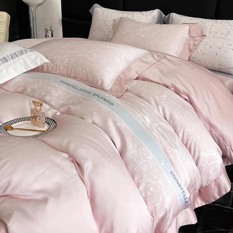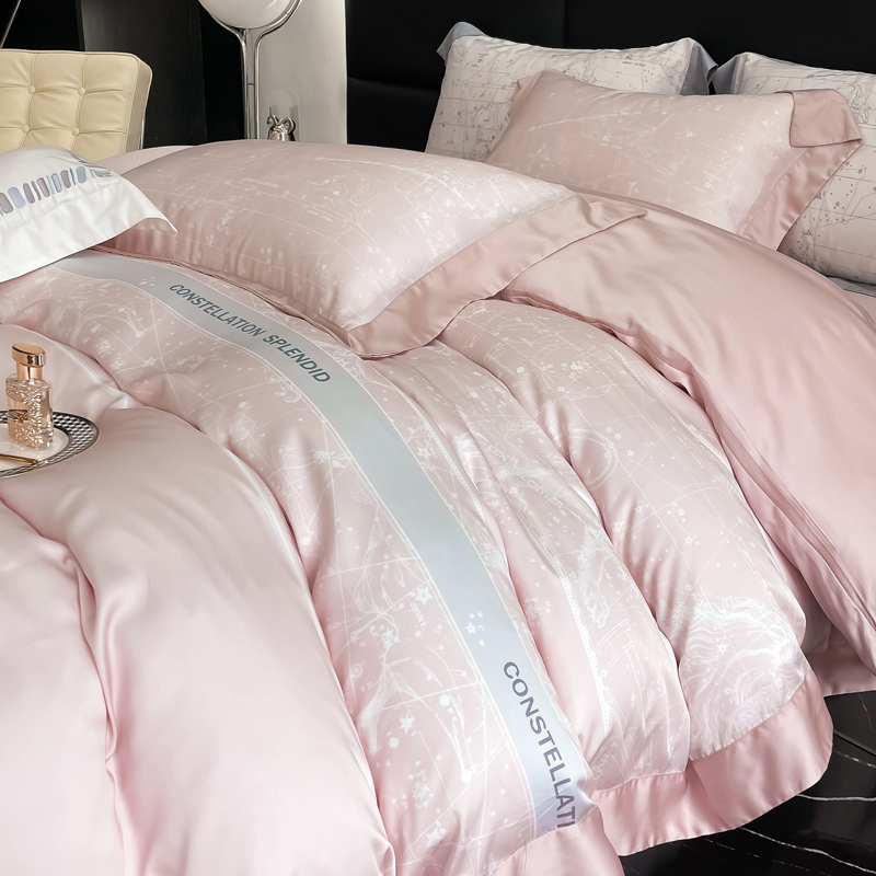 若未家居2025新款50支兰精天丝轻奢风数码印花套件 狮子座 狮子座 浅粉