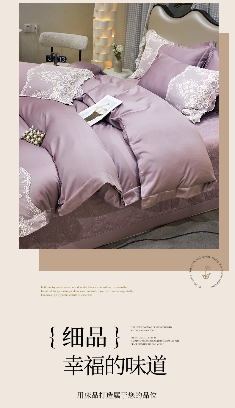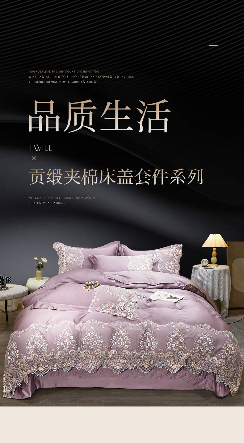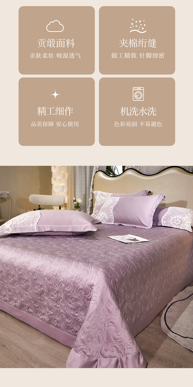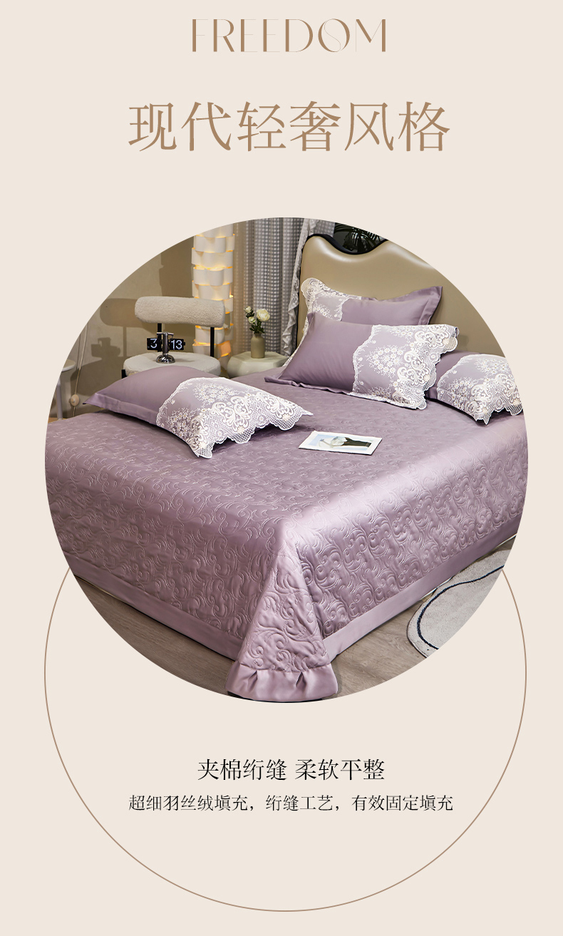 当前位置: 91家纺网 > 商品网购 > 床品套件 > 四件套 > 全棉普通四件套 > 罗艺轩 2024新款贡缎夹棉床盖--四件套(控价249元起) 简爱-华丽紫
