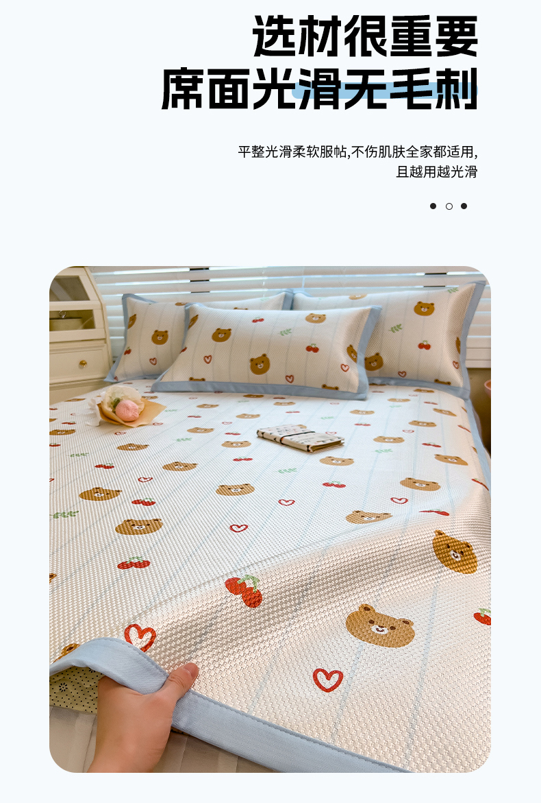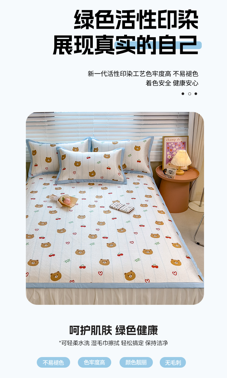 商品名称:布卢姆床垫 2025新款A类抗菌数码印花冰藤席 樱桃熊