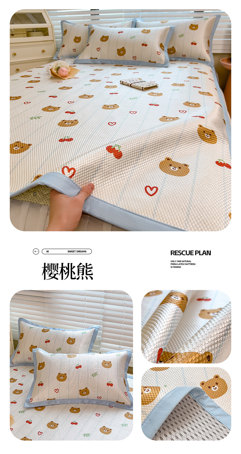 布卢姆床垫 2025新款A类抗菌数码印花冰藤席 樱桃熊