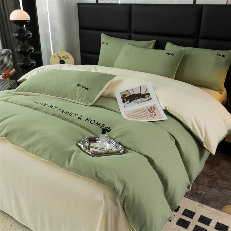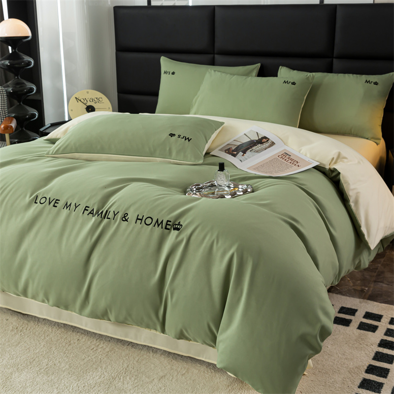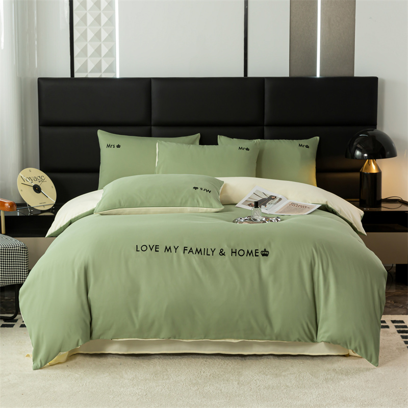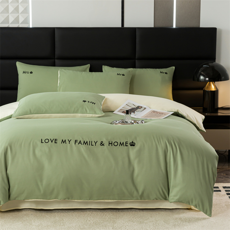 梦莱家纺 2024新款磨毛刺绣四件套 果绿