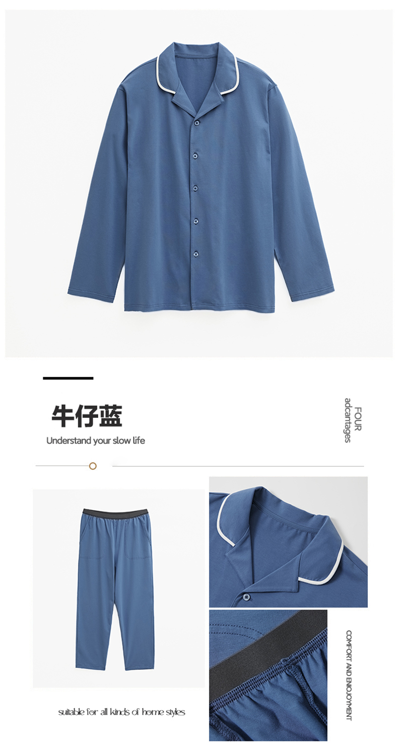 商品名称:EH 2024新款全棉男女情侣款家居服-男女款翻领 男款牛仔蓝