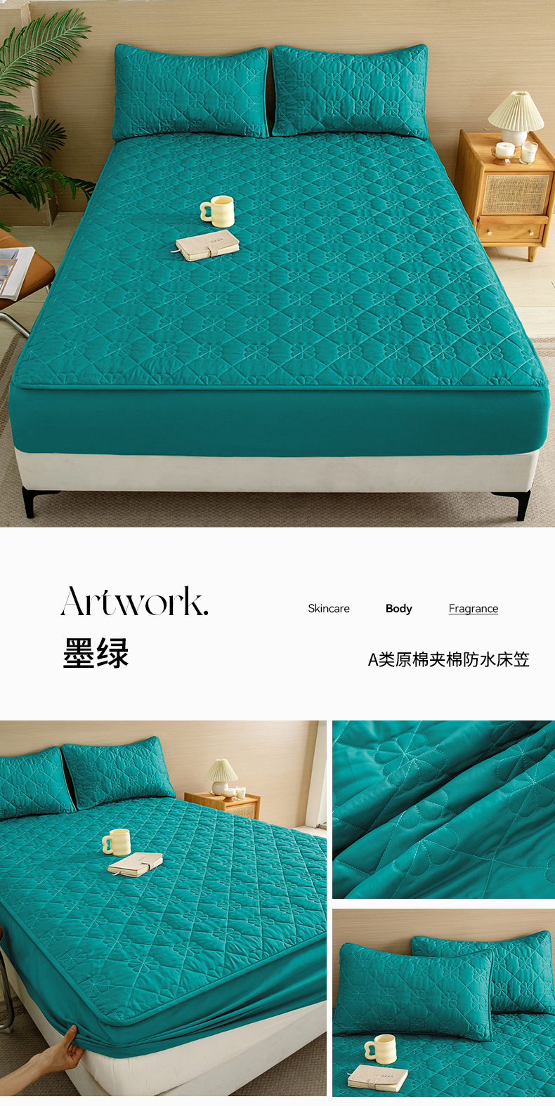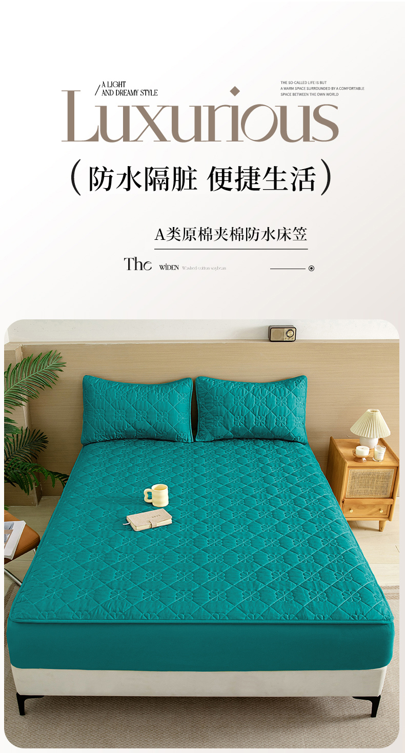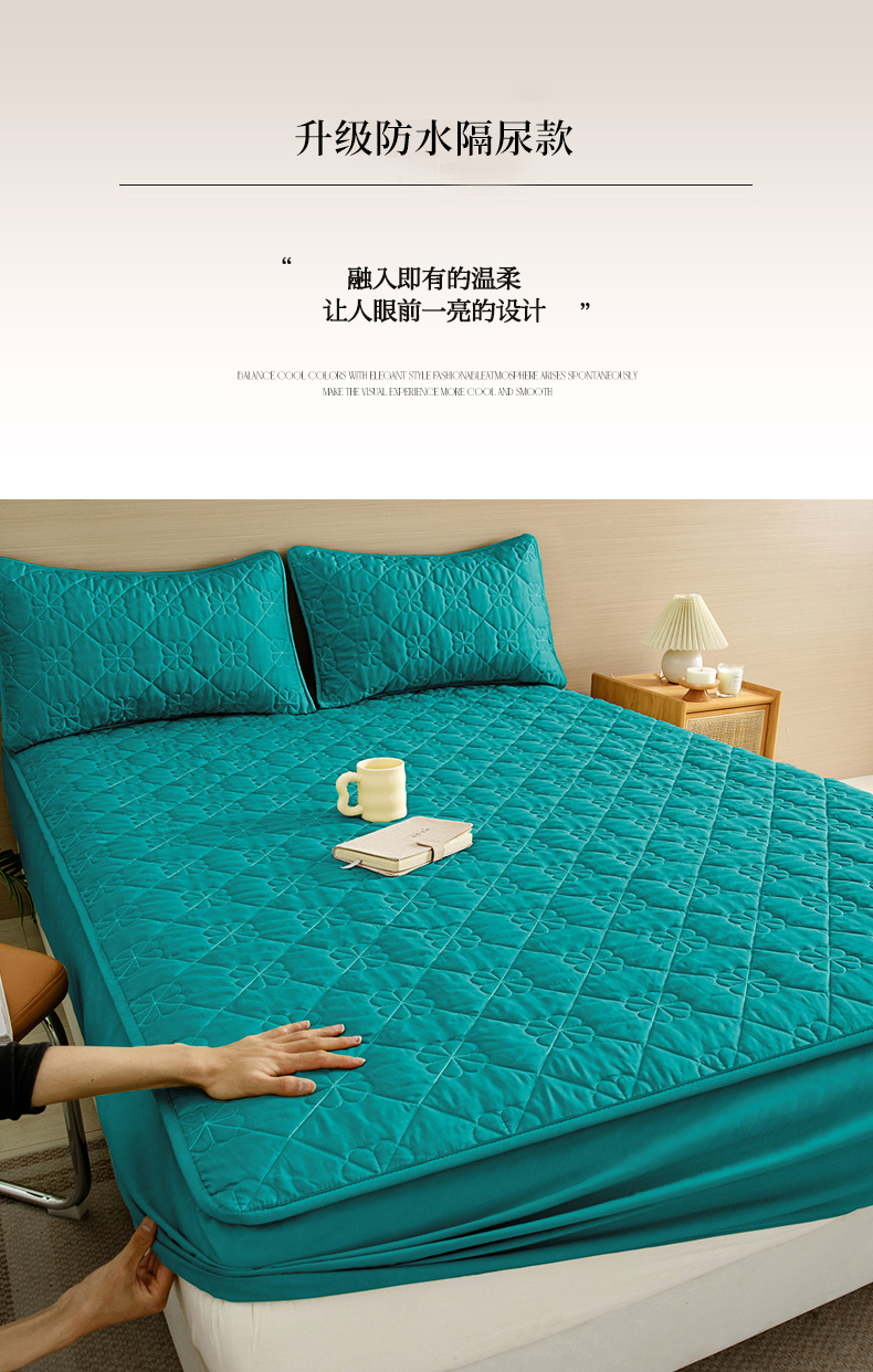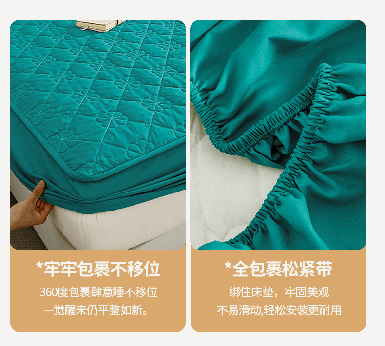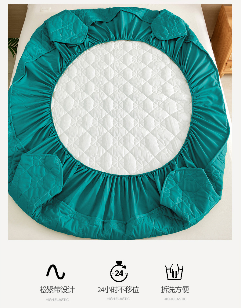 • 91家纺网 家纺一手货源 找家纺 恒尚居 2024爆款四叶草绗缝夹棉防水床笠-四季款 四叶草-墨绿