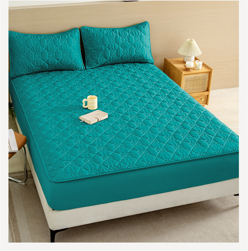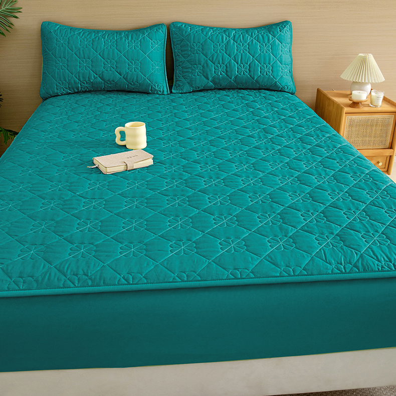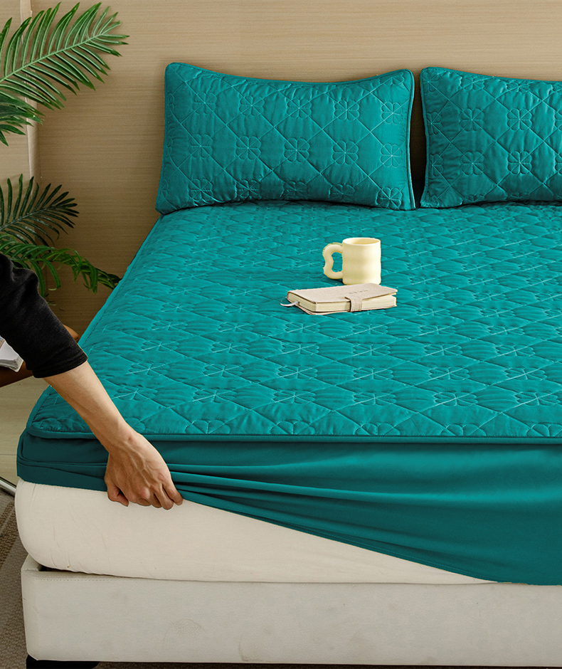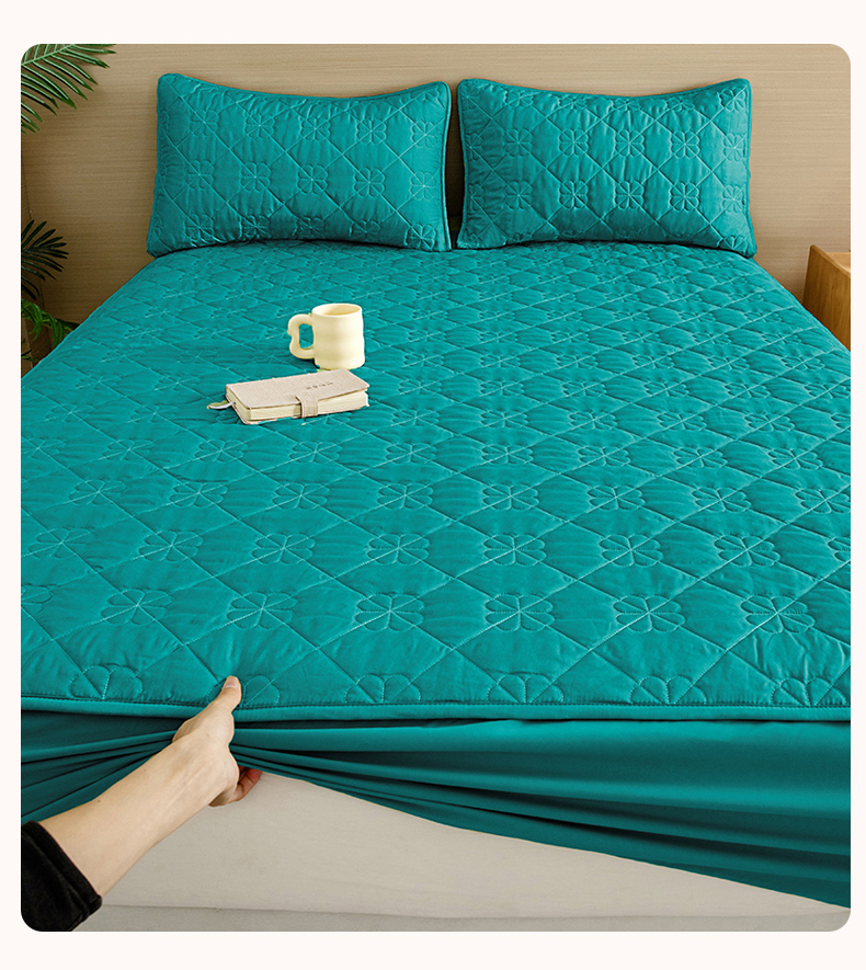 恒尚居 2024爆款四叶草绗缝夹棉防水床笠-四季款 四叶草-墨绿