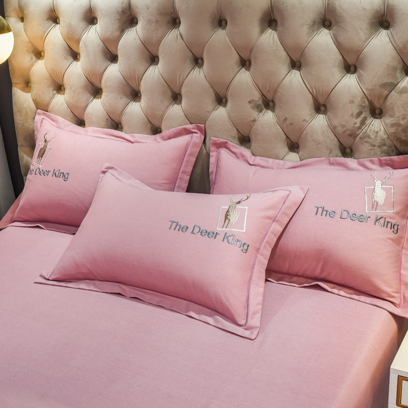 艾迪尚家纺 2025新款纯色生态磨毛绣花单枕套 麋鹿-豆沙