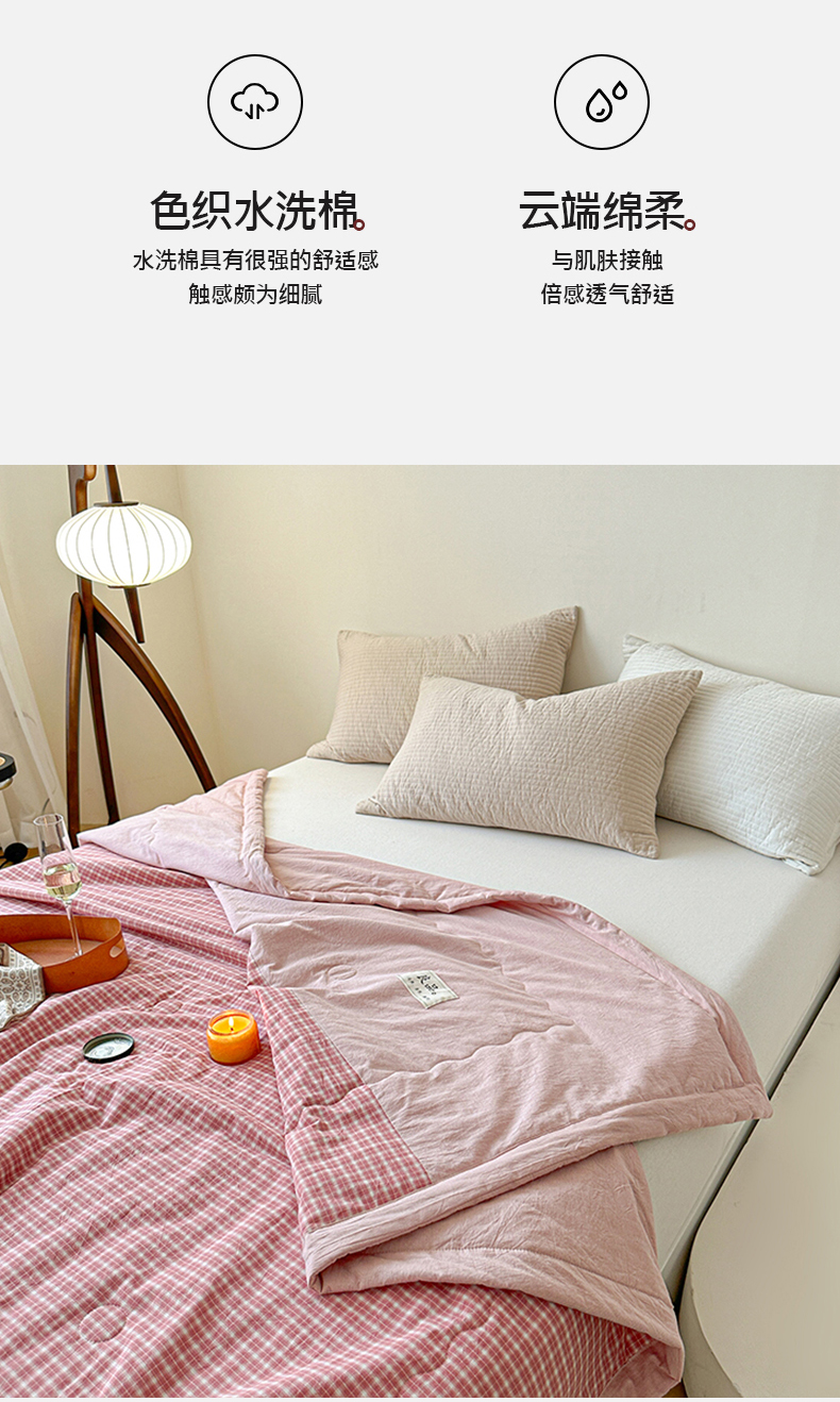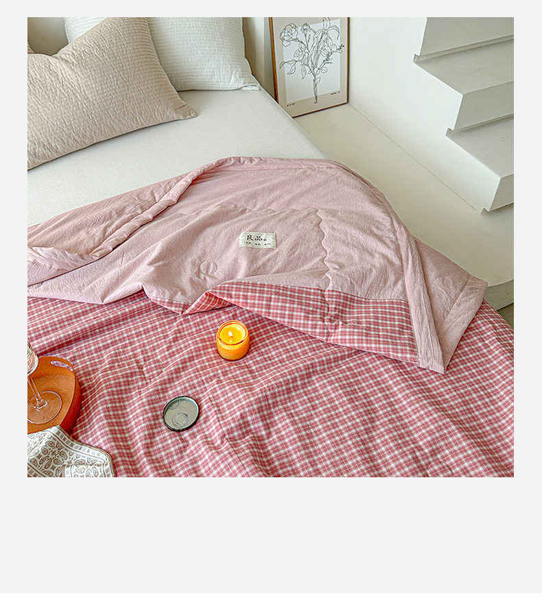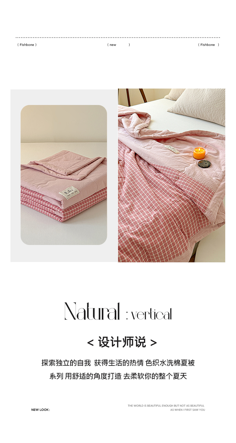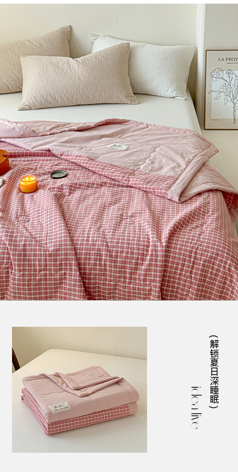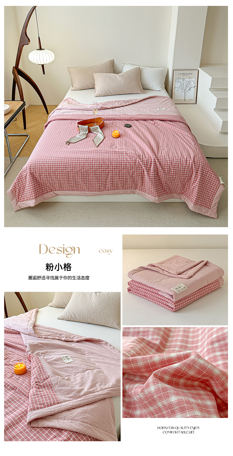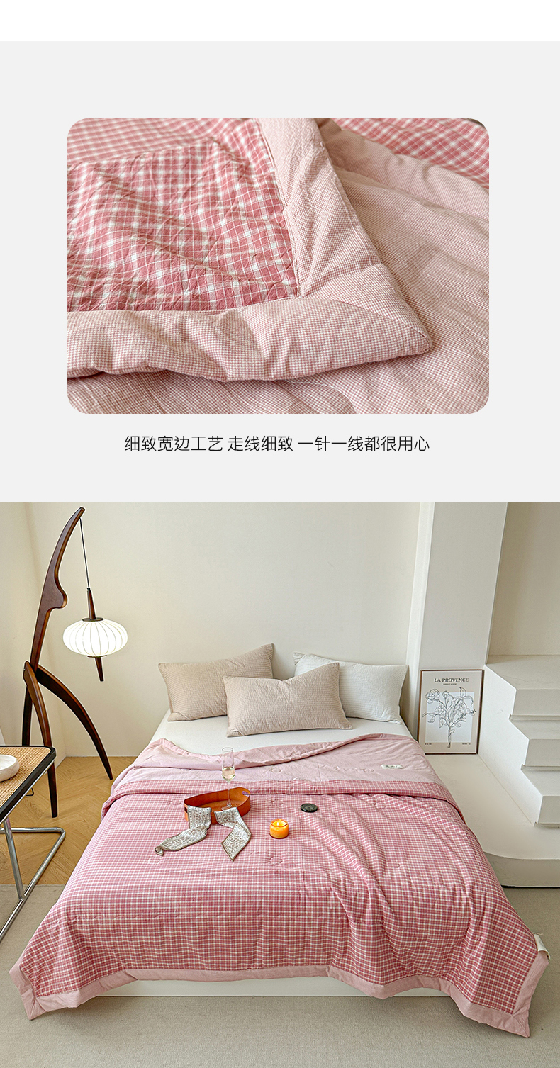 源舜家纺 2025新款全棉水洗棉夏被 粉小格