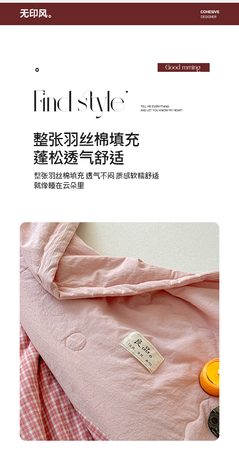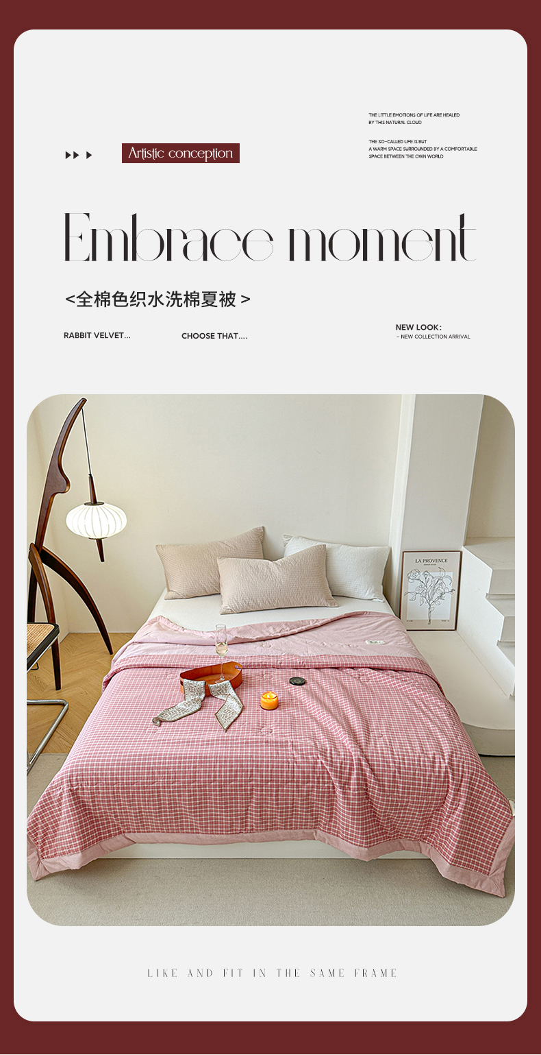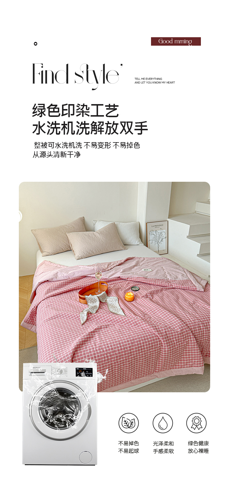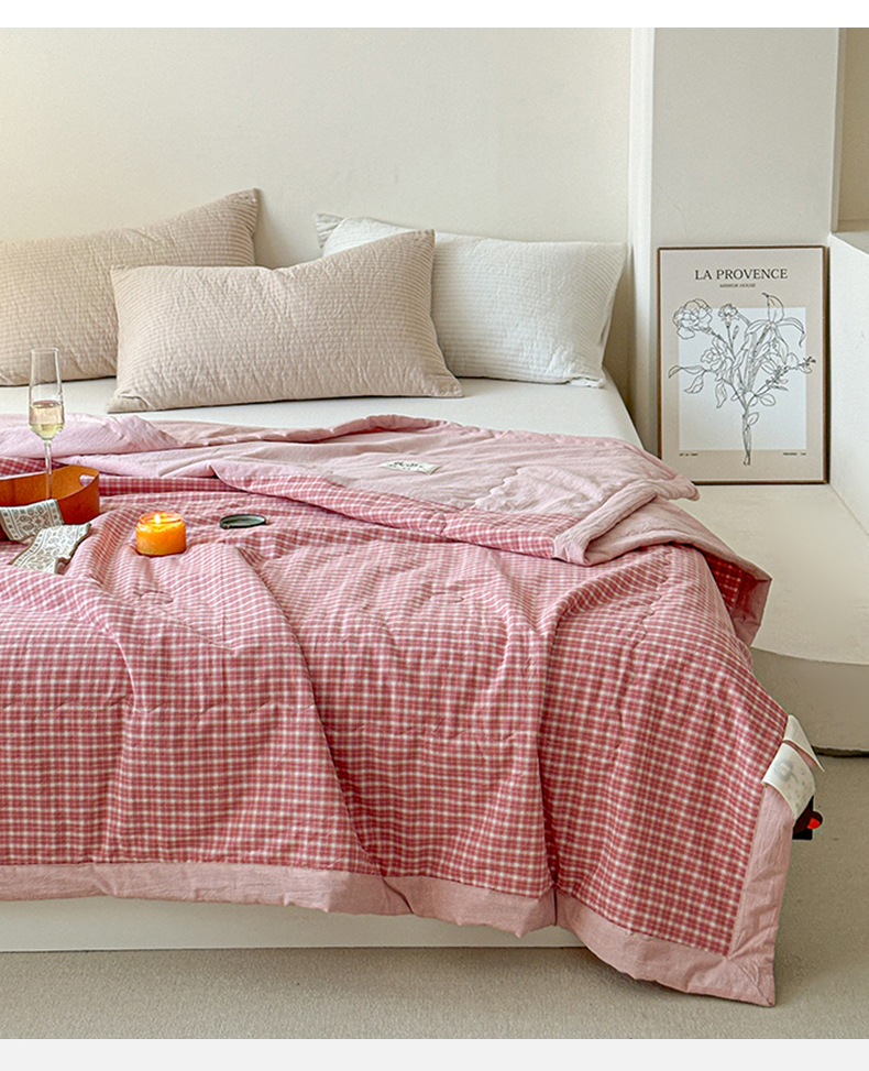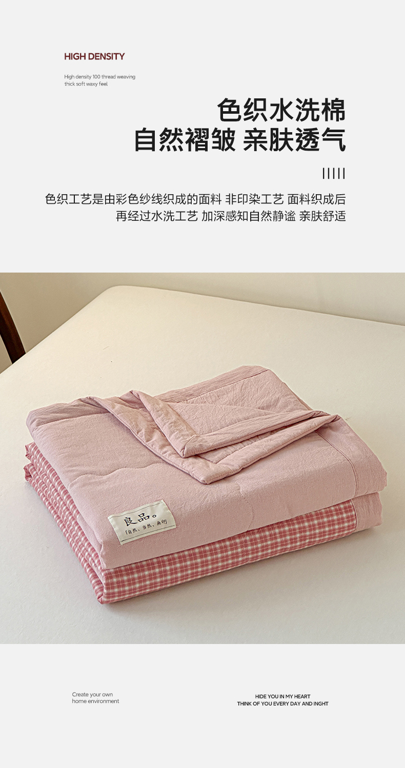 源舜家纺 2025新款全棉水洗棉夏被 粉小格