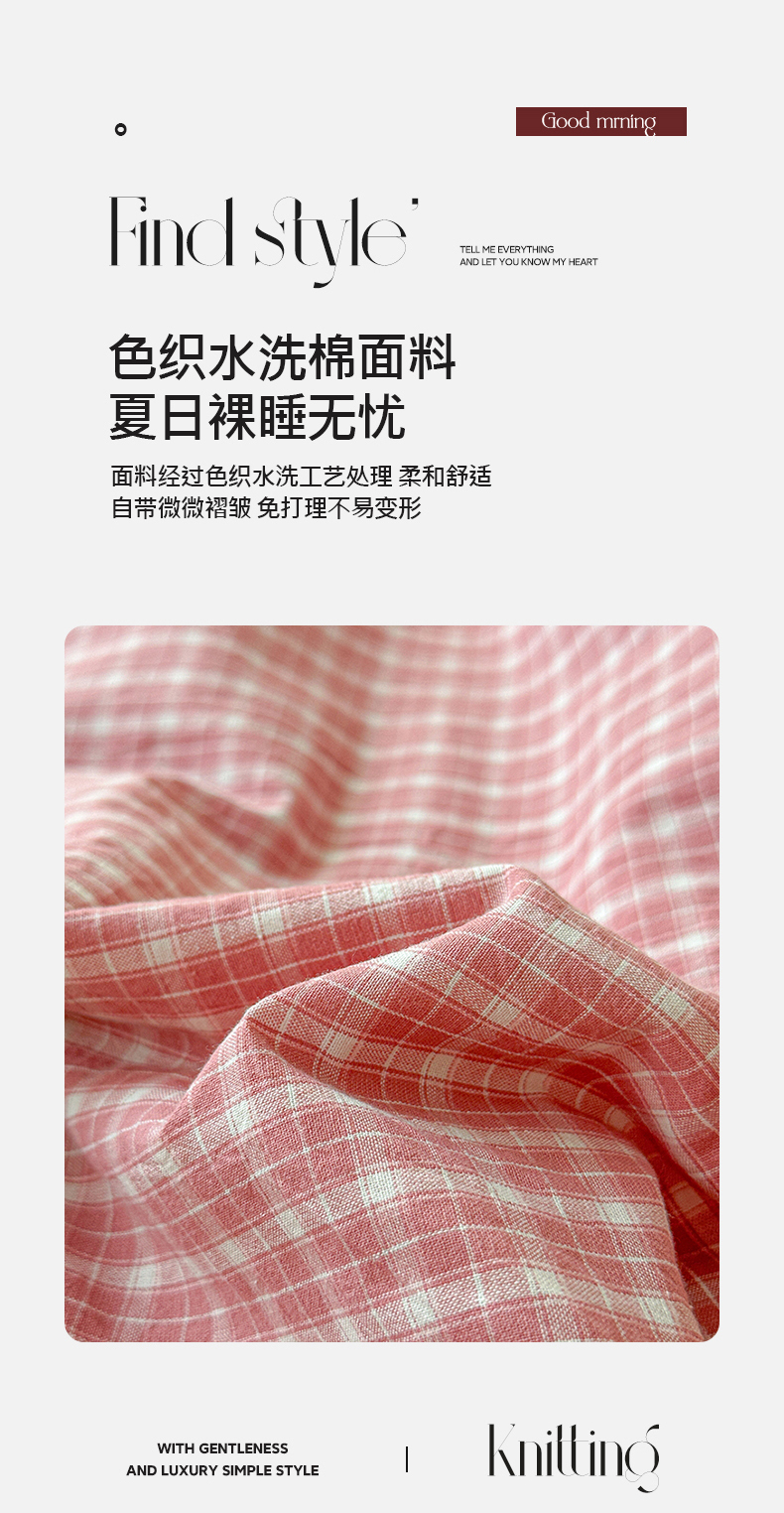 商品名称:源舜家纺 2025新款全棉水洗棉夏被 粉小格