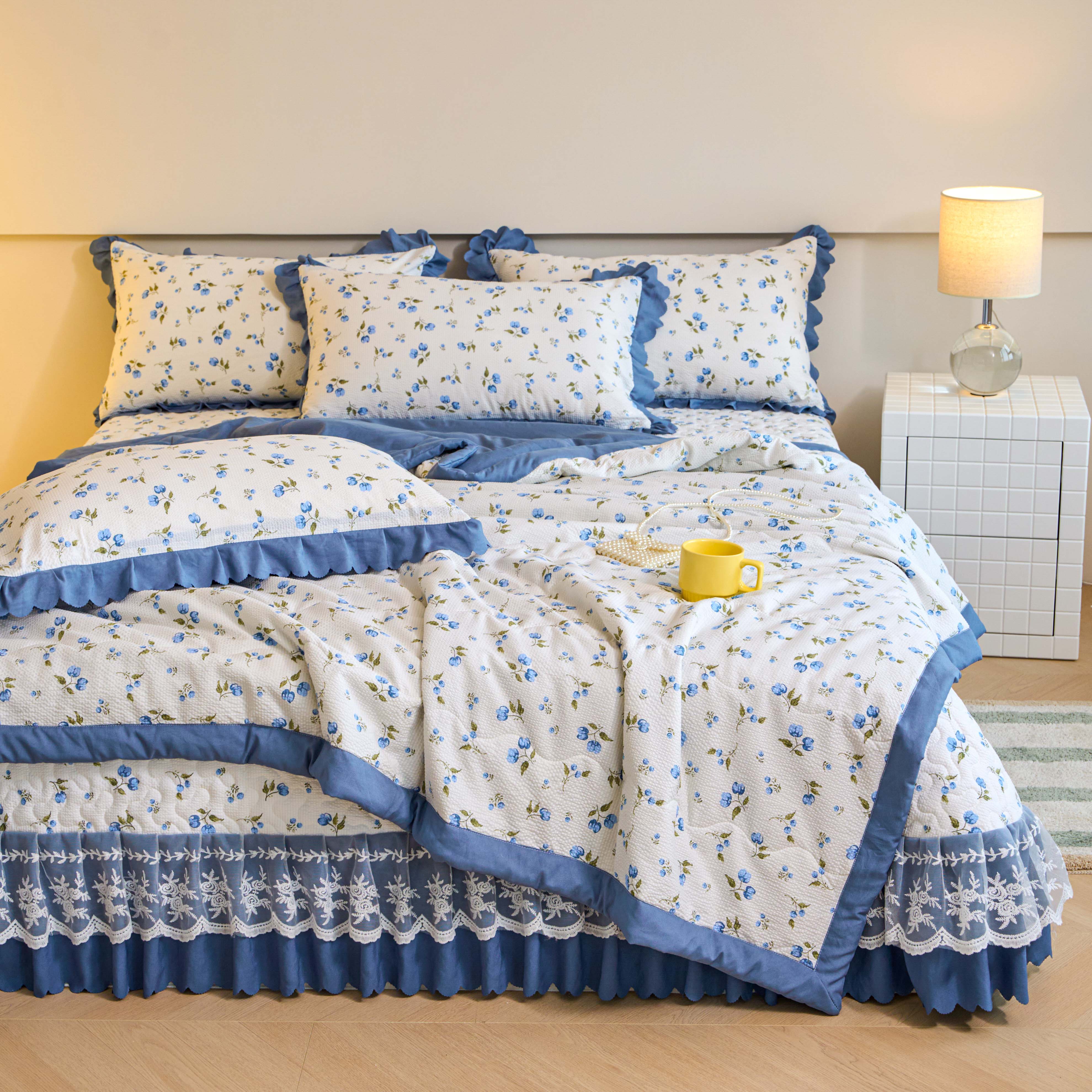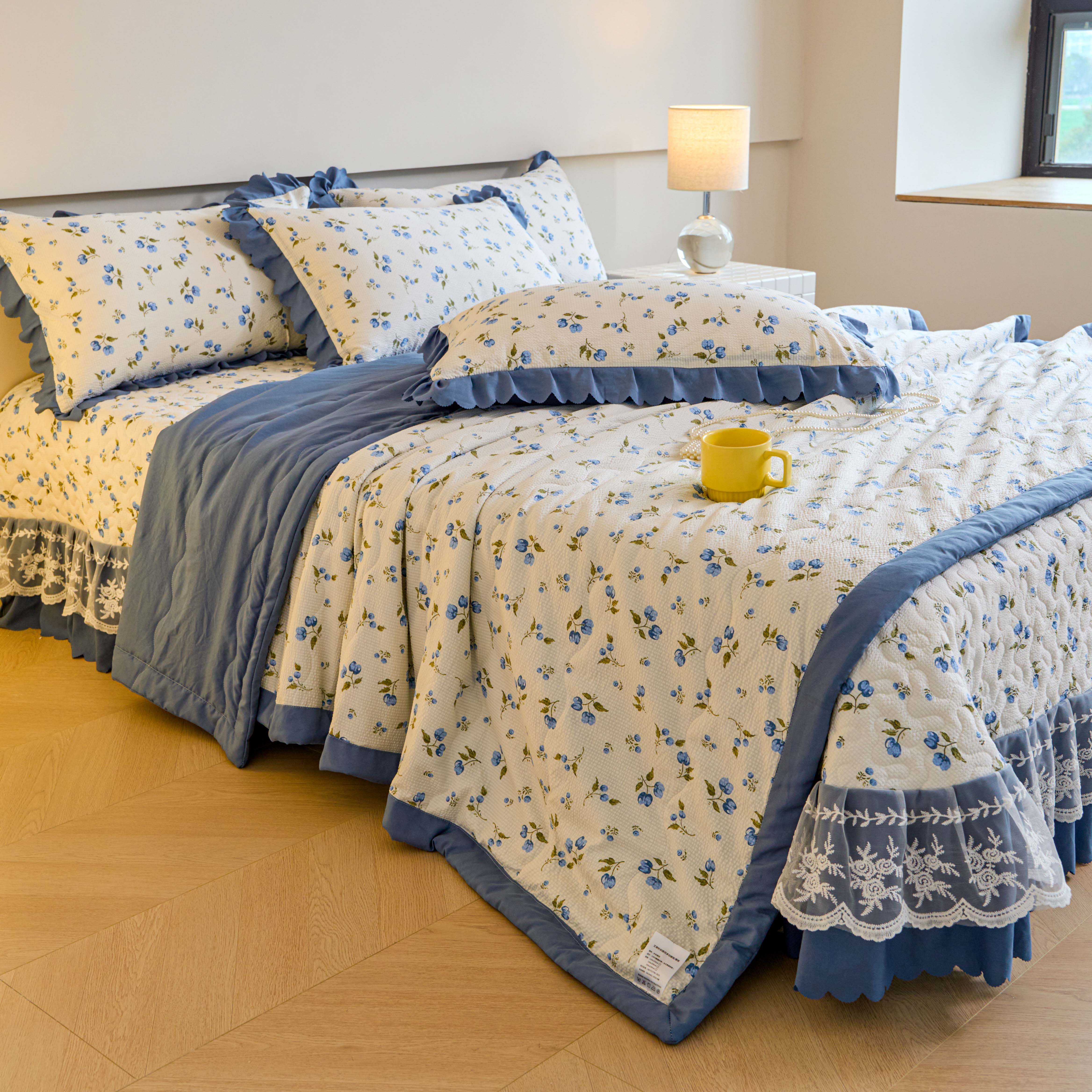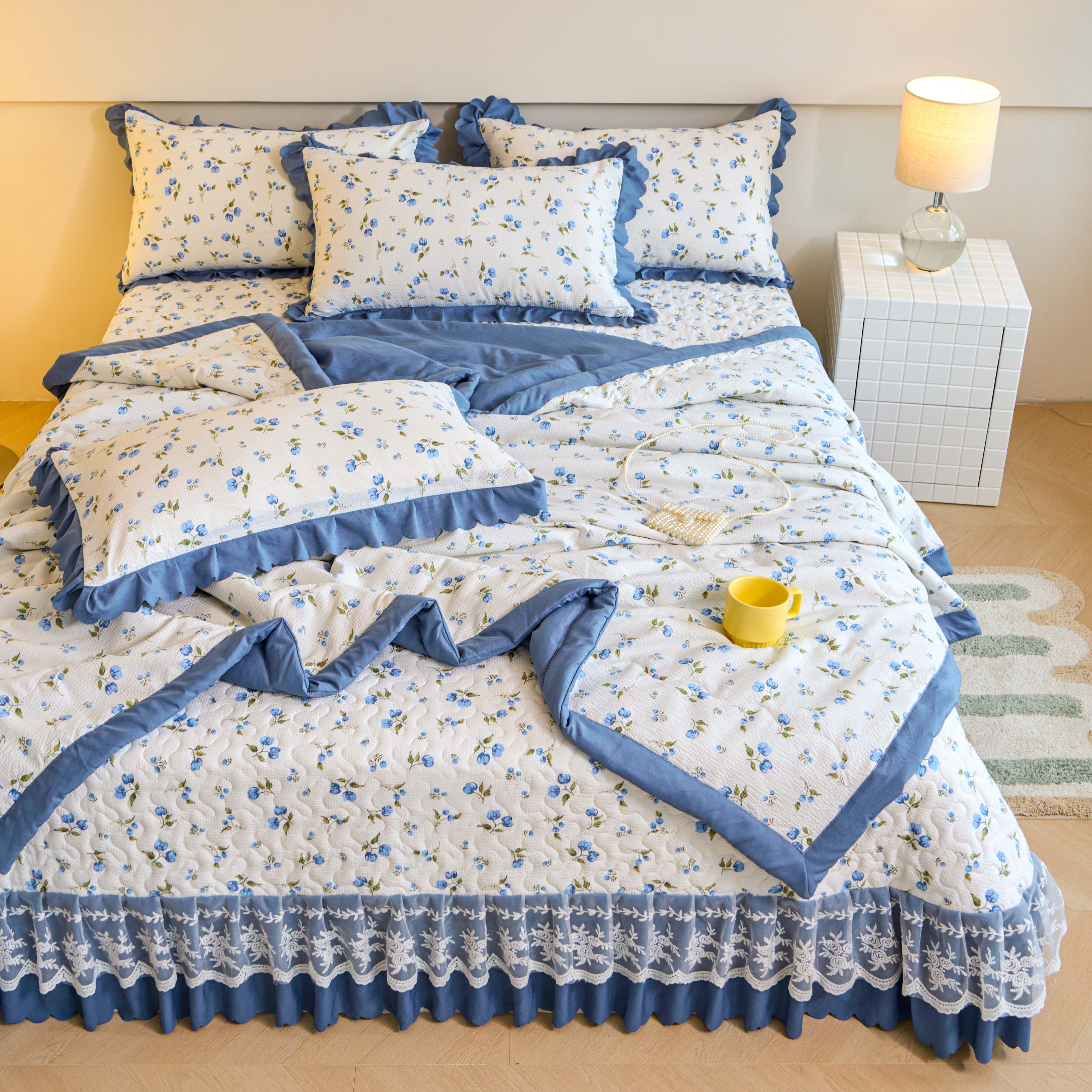 美莱家纺 2024新款软糯泡泡棉蕾丝床盖床盖四件套单品系列-床盖夏被四件套 海棠