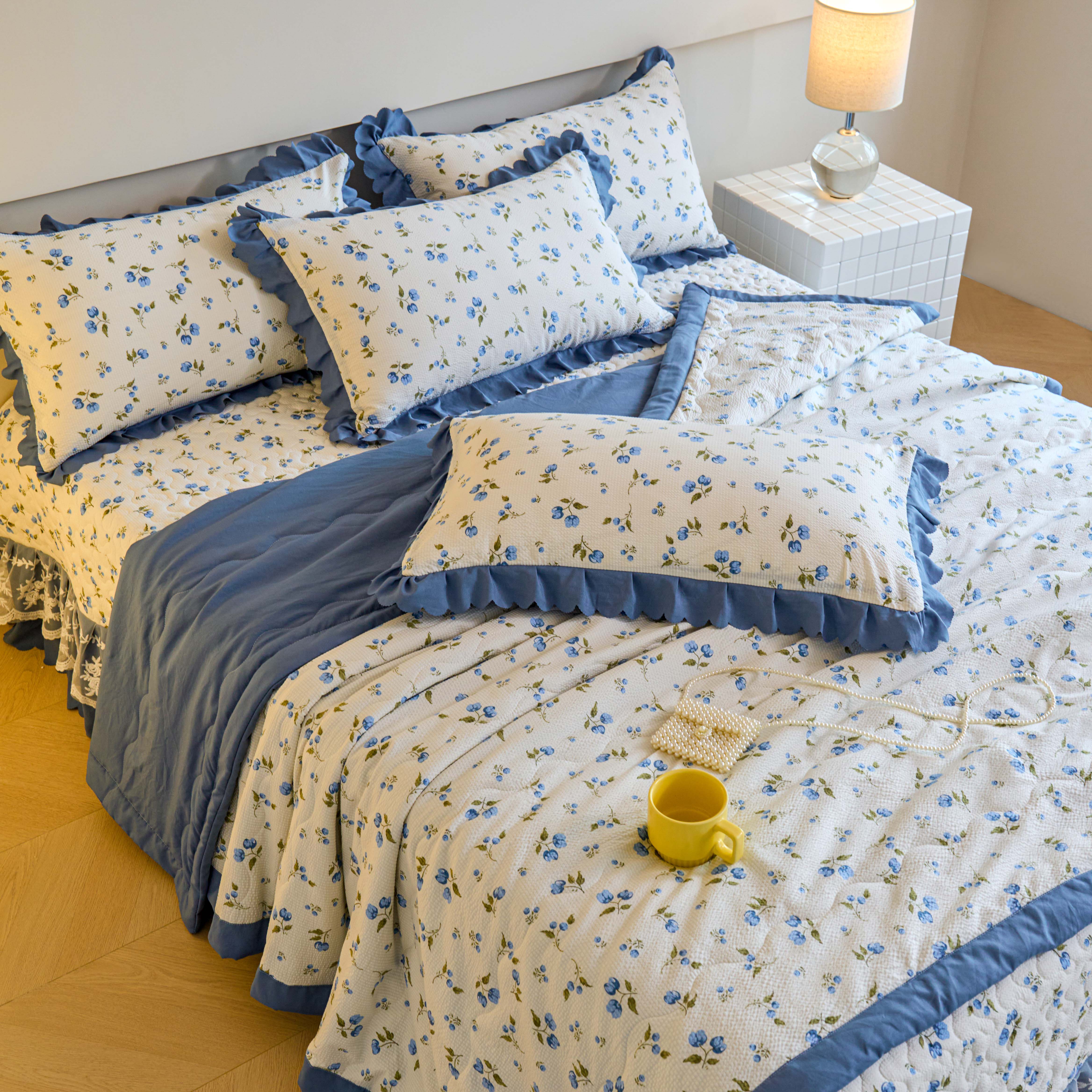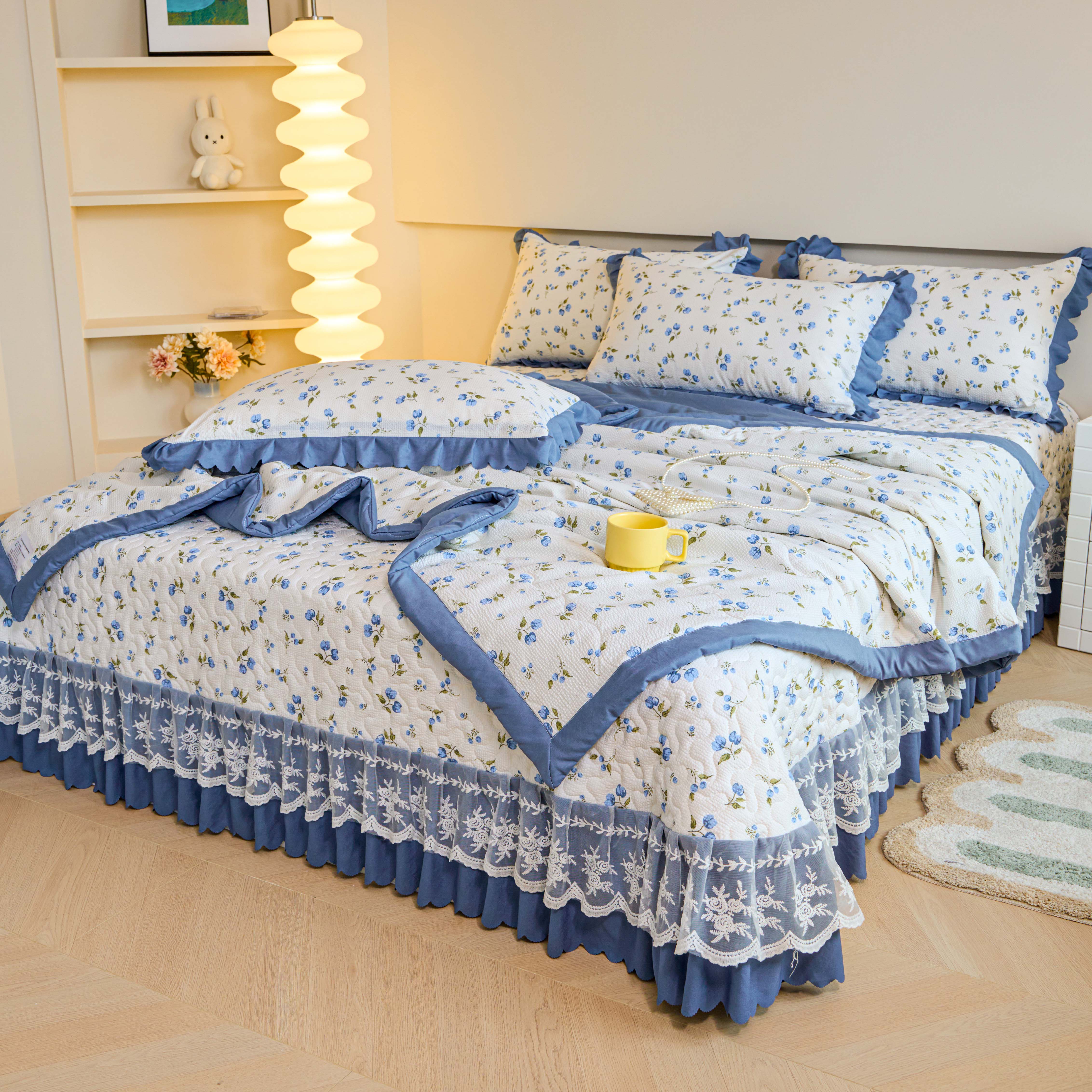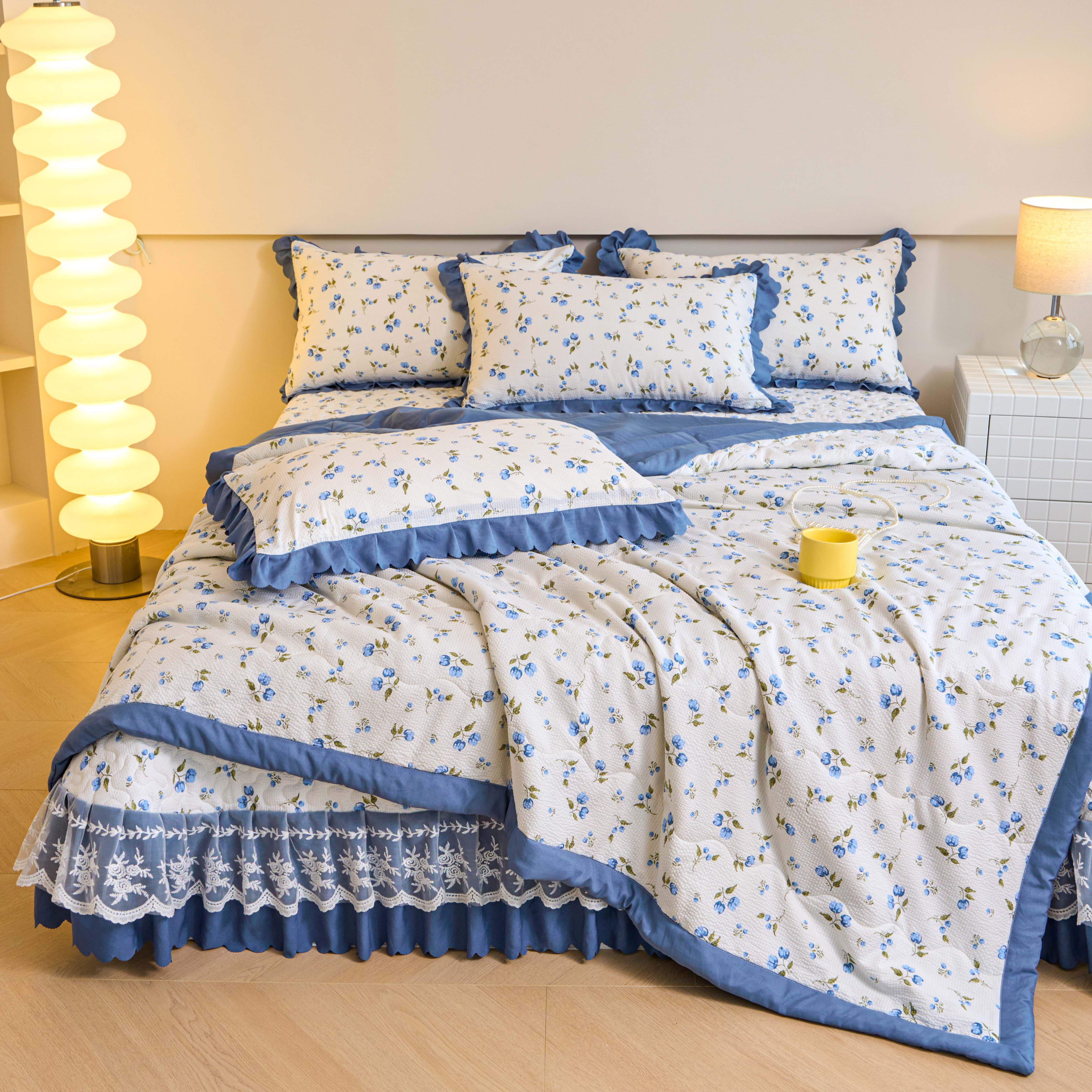 美莱家纺 2024新款软糯泡泡棉蕾丝床盖床盖四件套单品系列-床盖夏被四件套 海棠