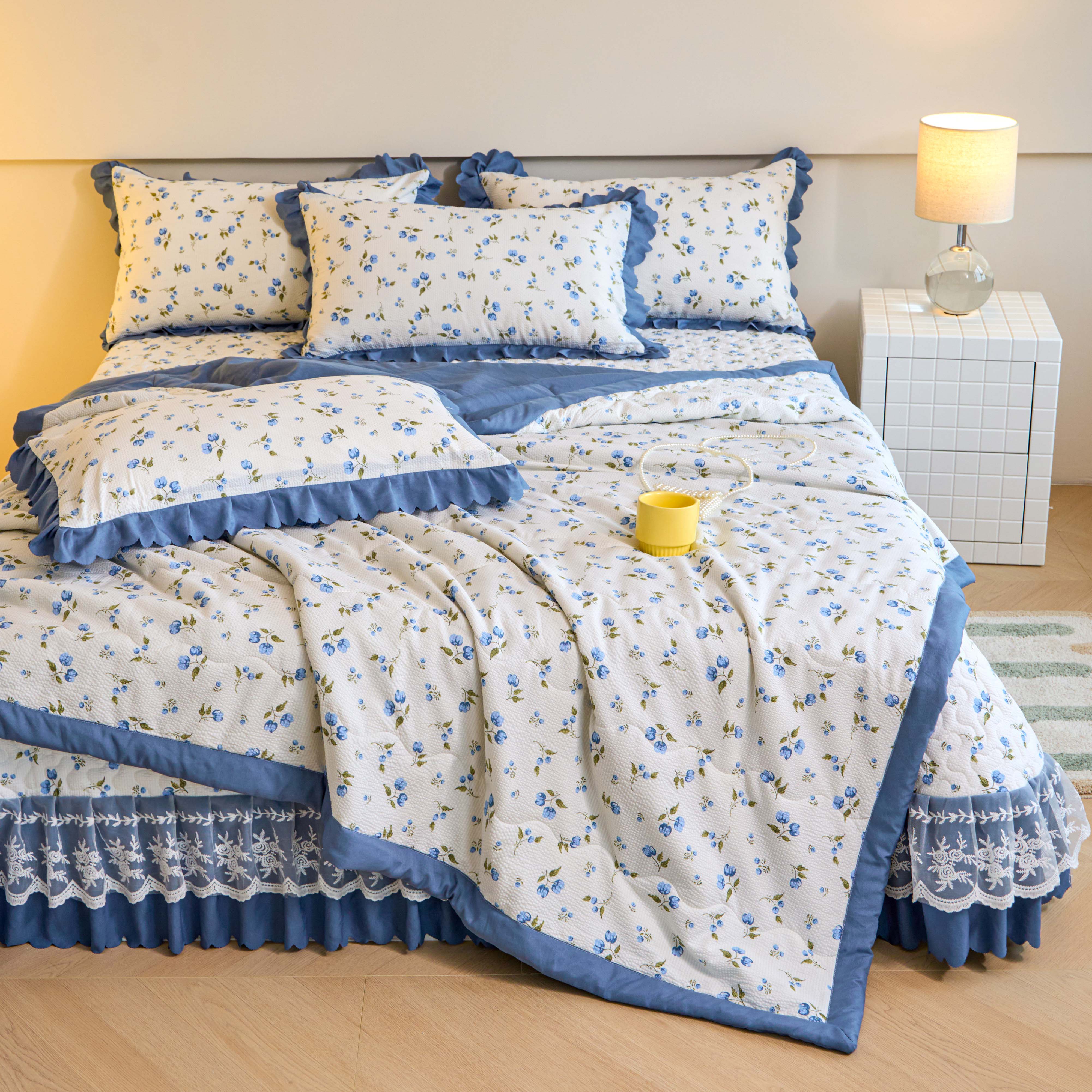 商品名称:美莱家纺 2024新款软糯泡泡棉蕾丝床盖床盖四件套单品系列-床盖夏被四件套 海棠