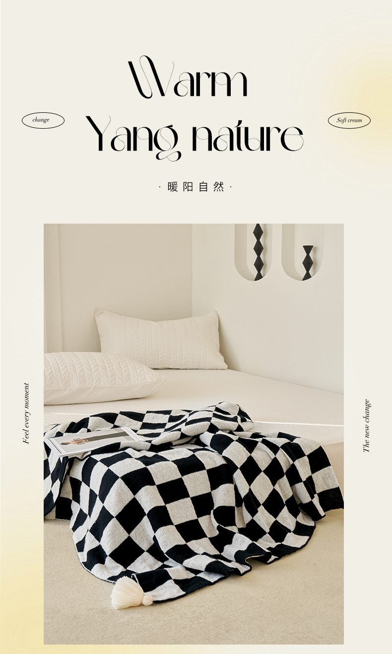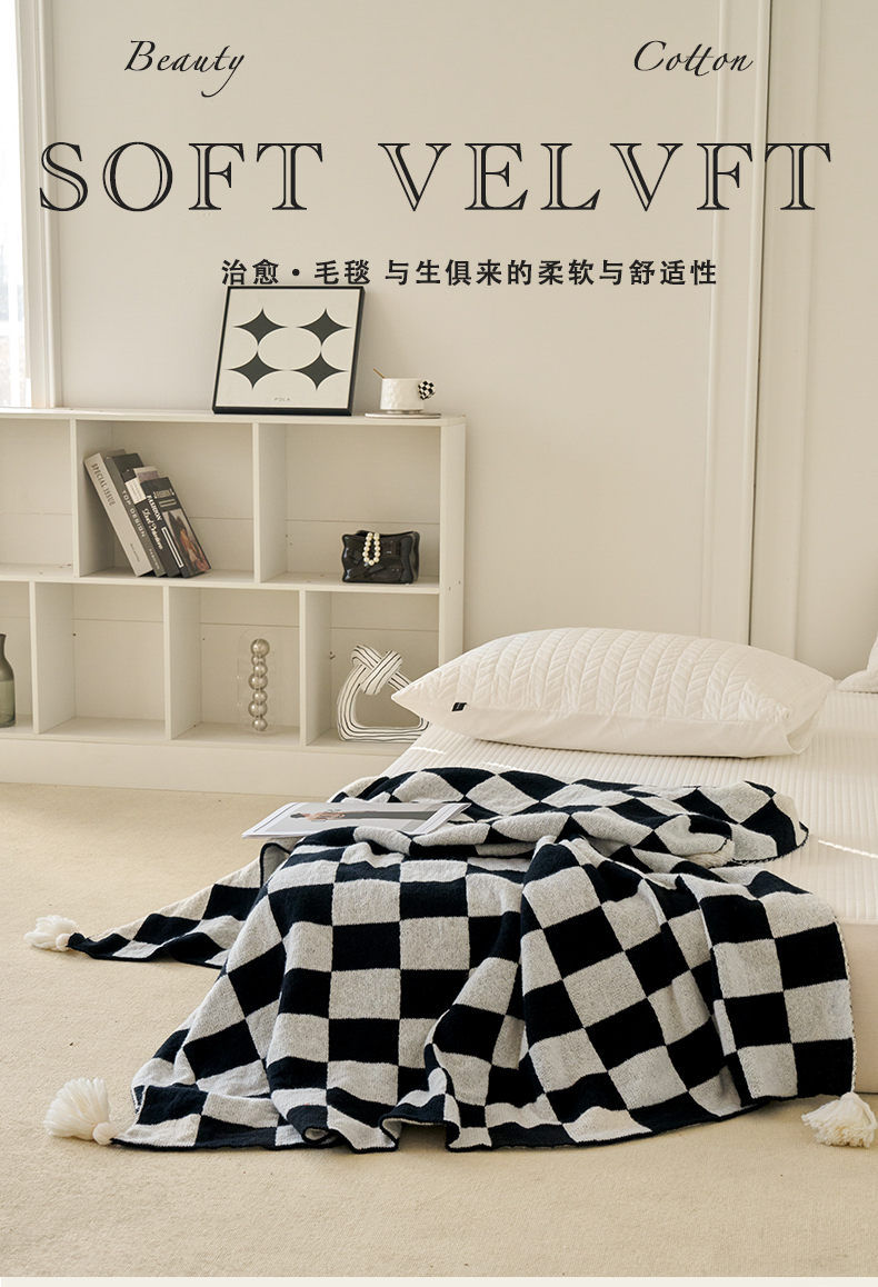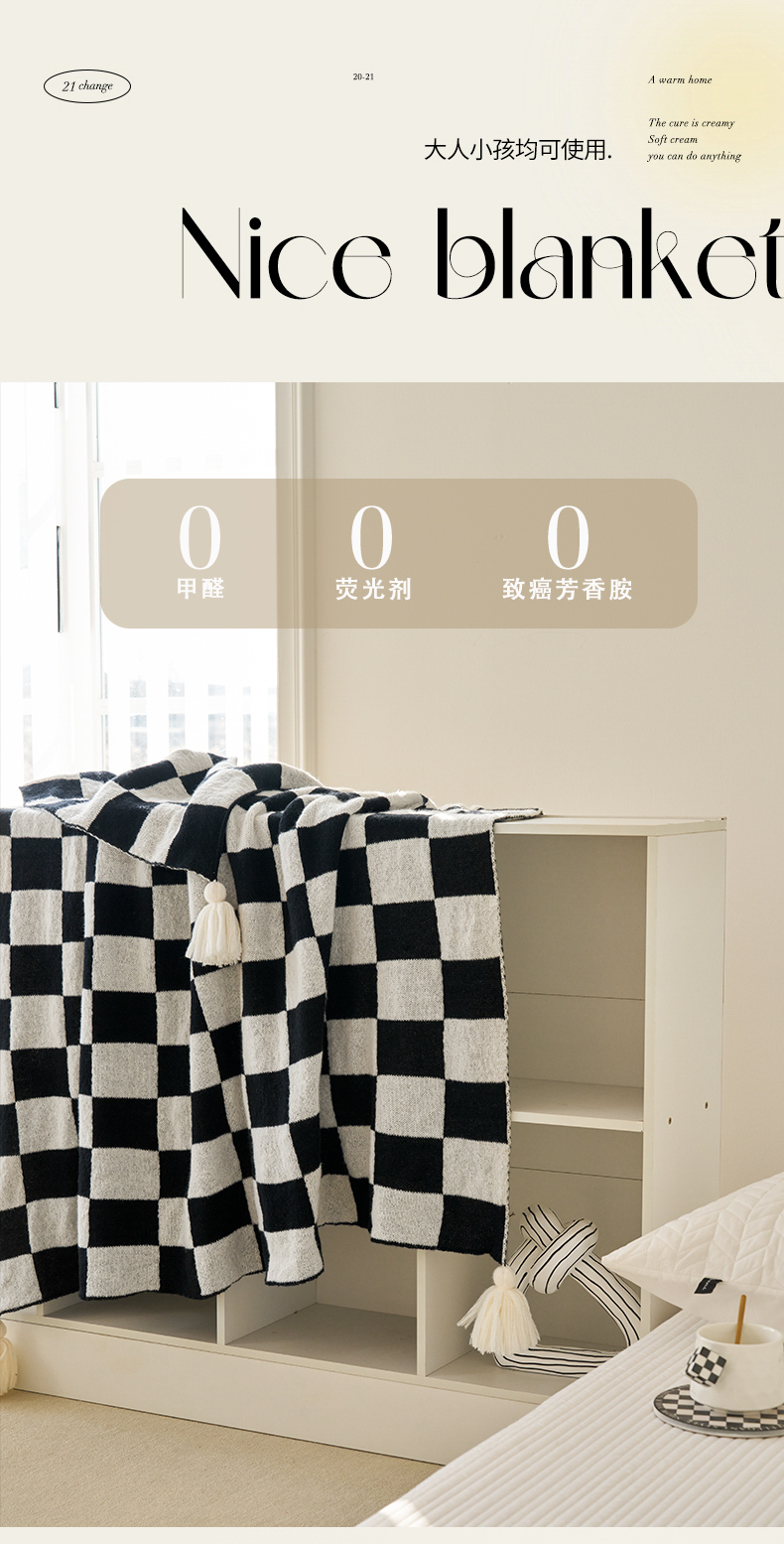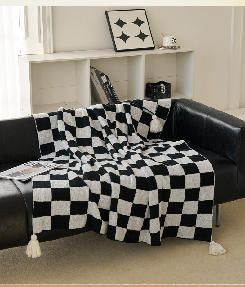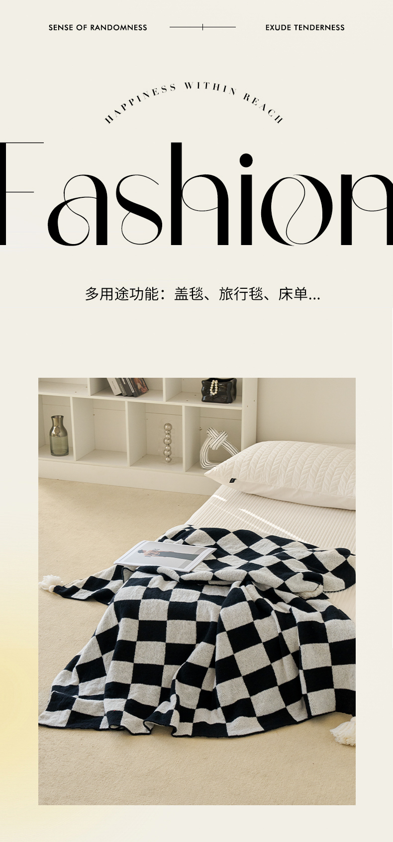 商品名称:苏艺针织盖毯 2024新款针织披肩沙发盖毯 针织-棋盘格