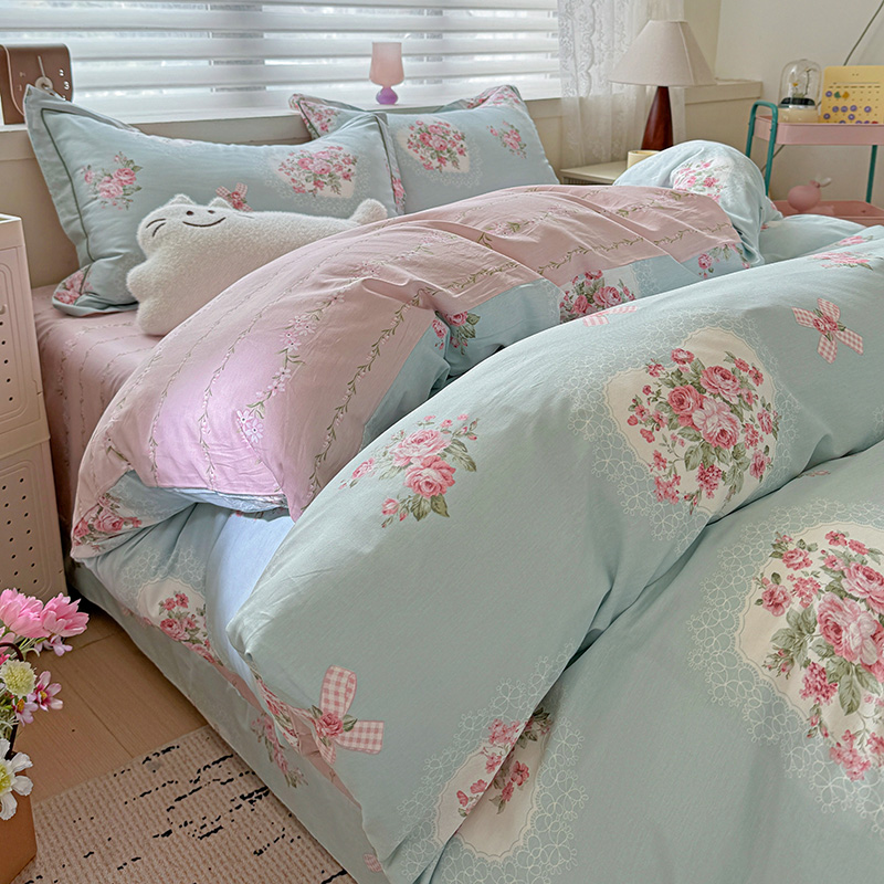 (总)乐童家纺 2026新款全棉纯棉拼接花边小清新工艺款四件套,彩虹木马,春日小兔,花田兔兔,凯莉梦境,口袋故事,浪花轻歌,毛线彩虹,梦境手账,千禧少女咖,少女日记,心跳瞬间