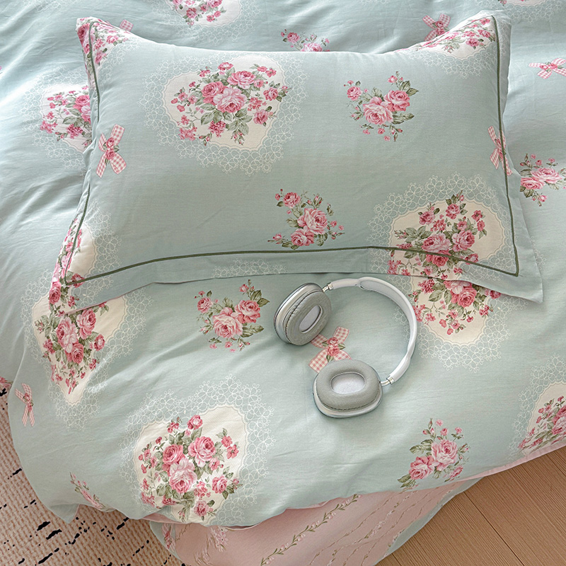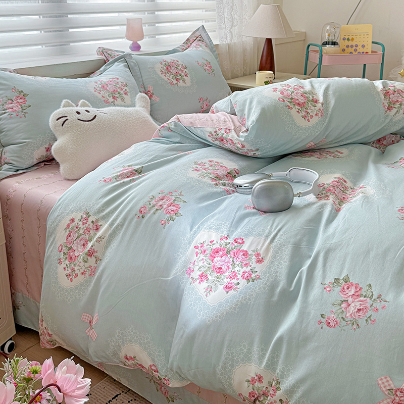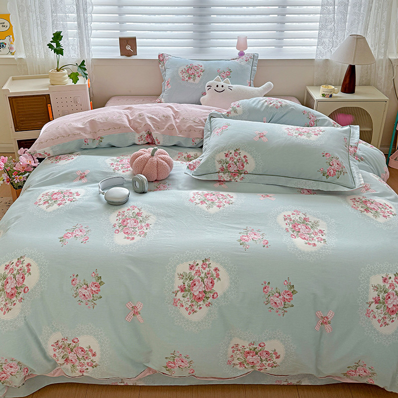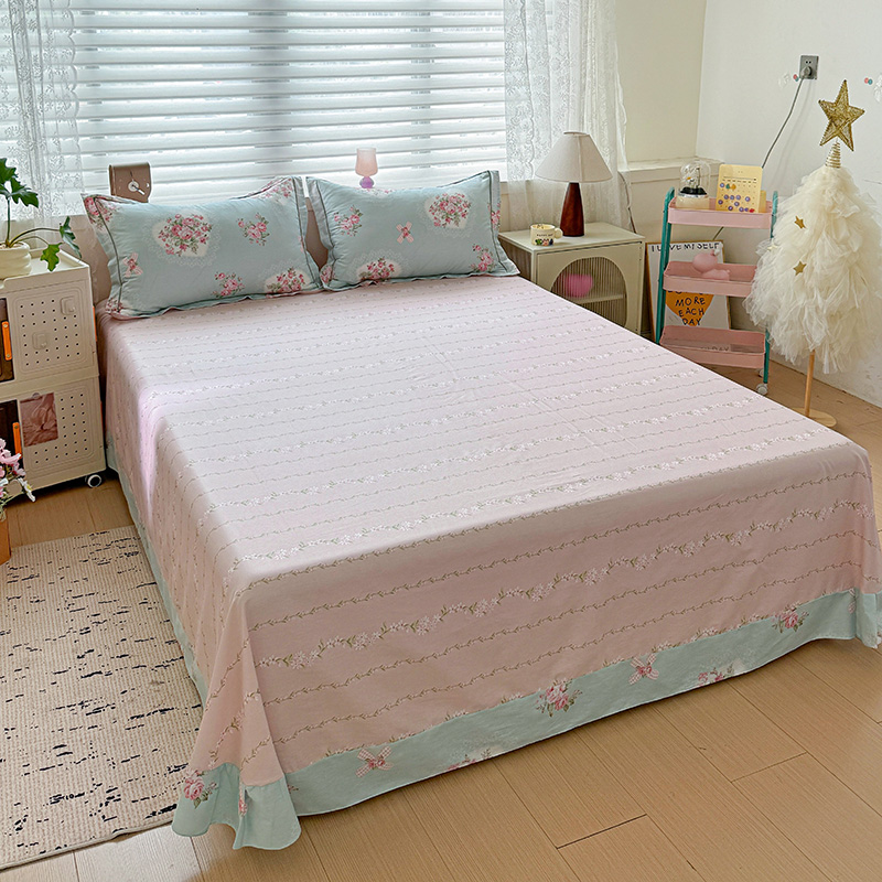 乐童 2024新款直播爆款13070纯棉印花吊边款一字绣四件套第八波花语