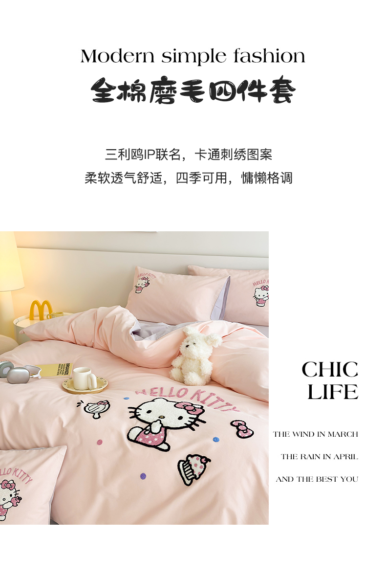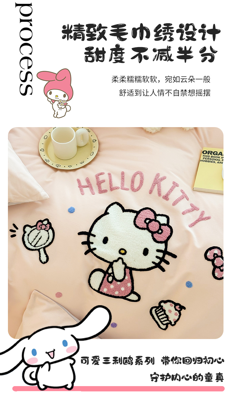 商品名称:(总)卧趣家纺 2024秋冬新品三丽鸥毛巾绣全棉磨毛卡通四件套系列