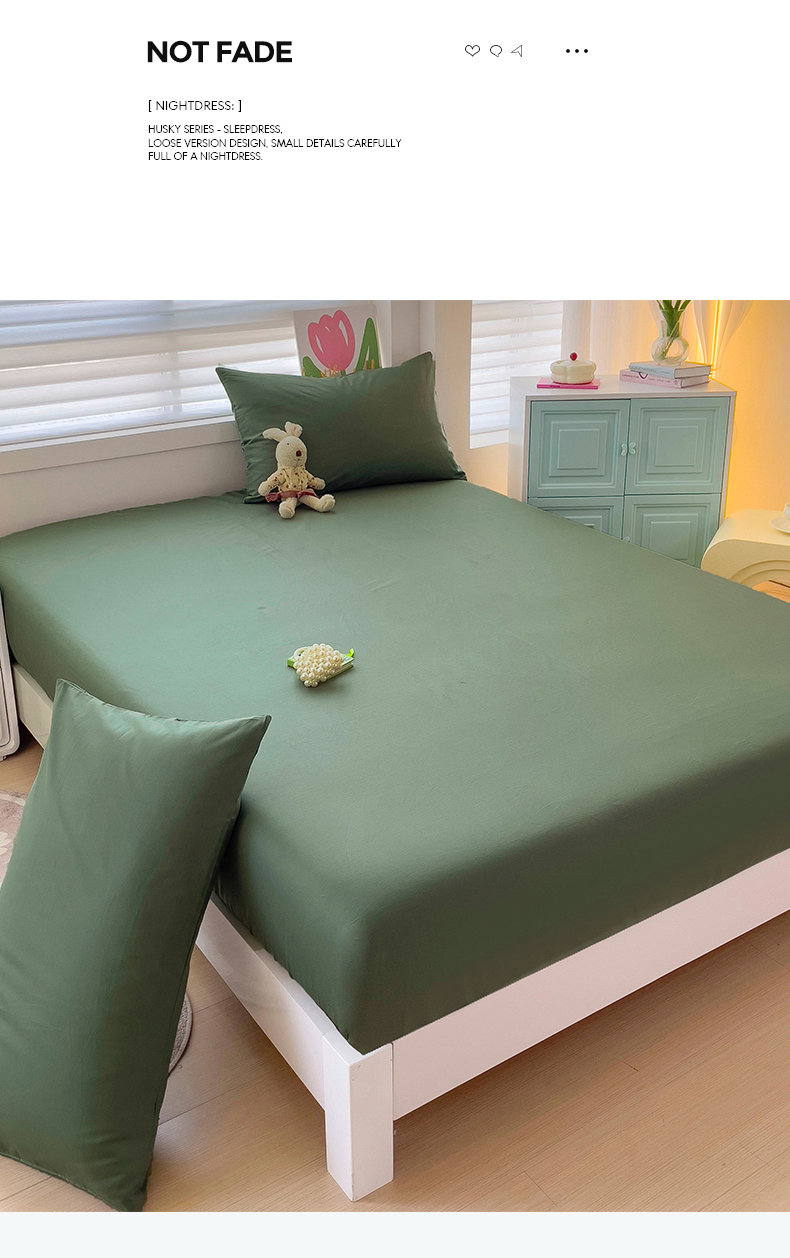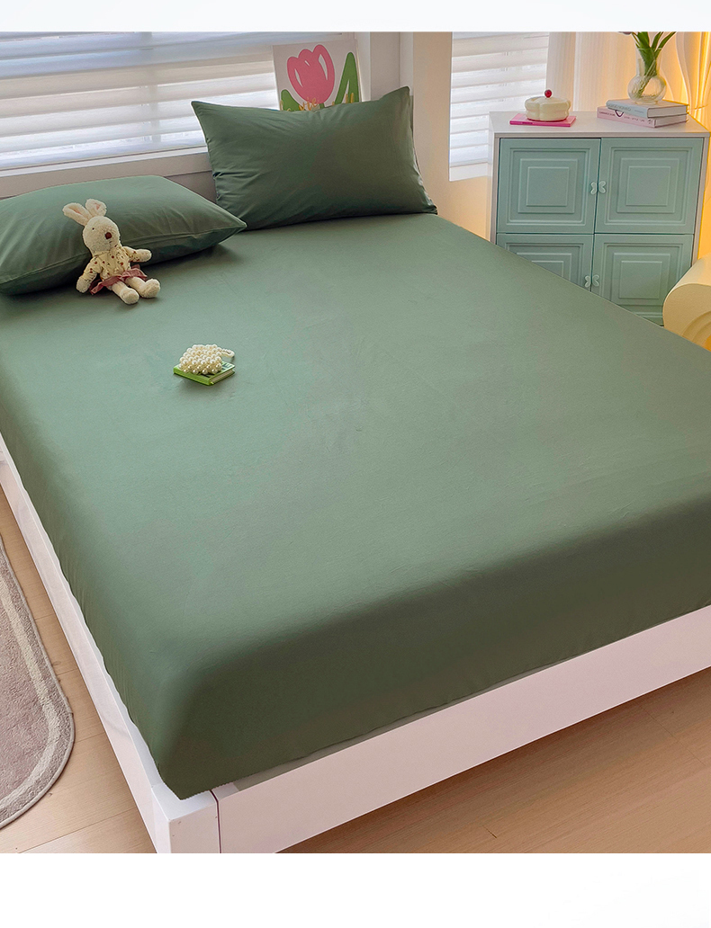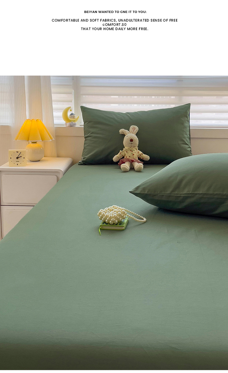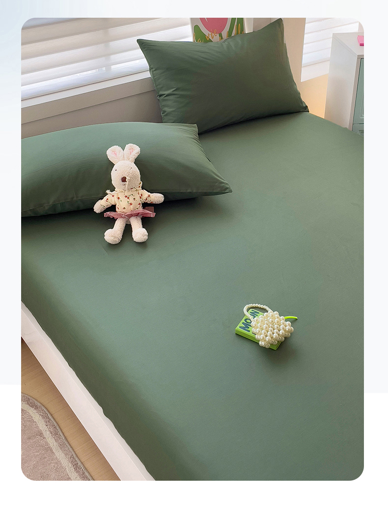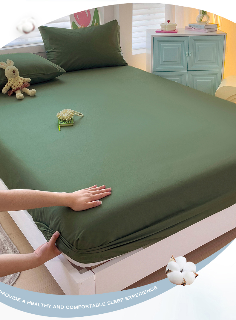 • 91家纺网 家纺一手货源 找家纺 2024新款纯色全棉简约床笠 松绿