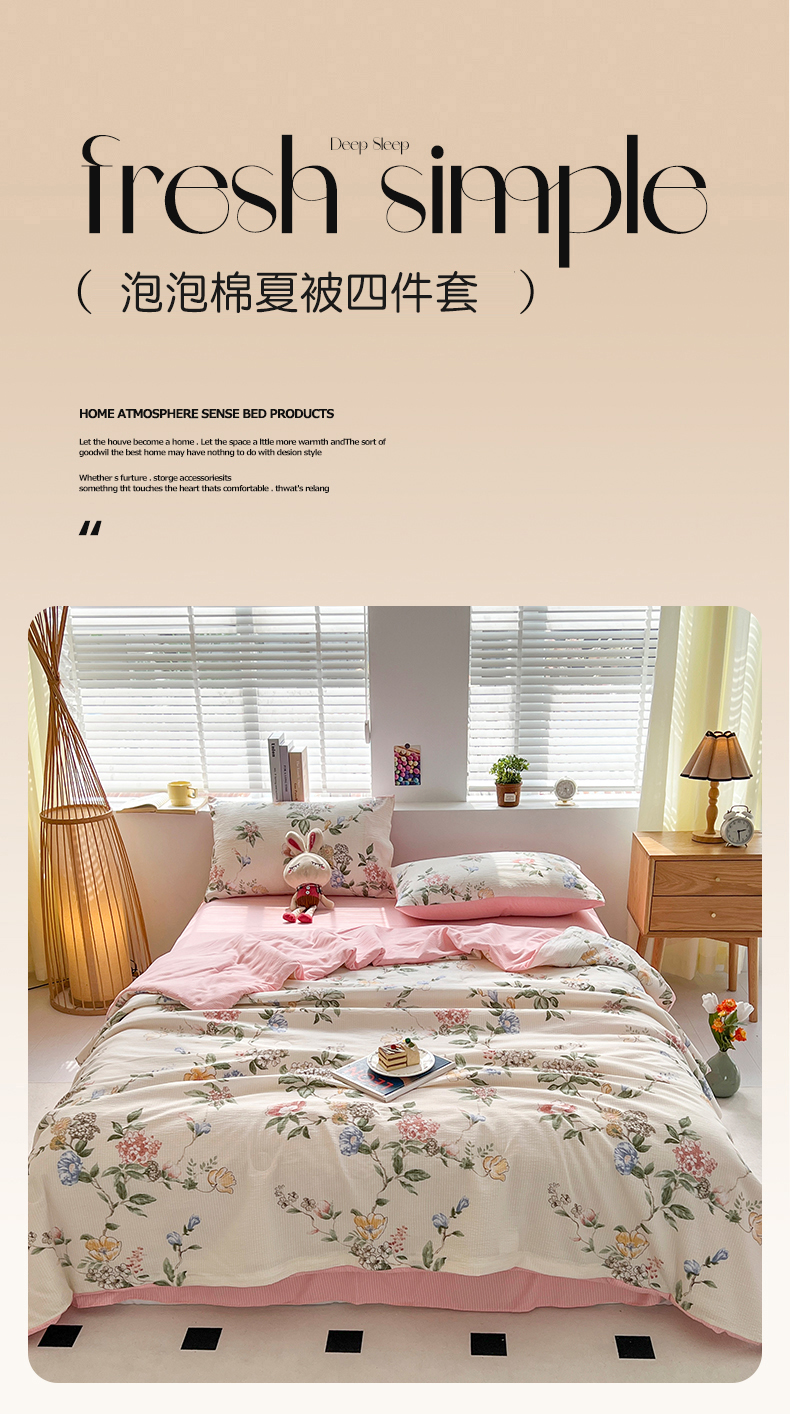 (总)梦莱情 2023新款泡泡纱水洗棉四件套,泡泡奶芙-天空蓝,泡泡奶芙-浅绿,泡泡奶芙-粉,泡泡奶芙-柠檬黄,泡泡奶芙-紫