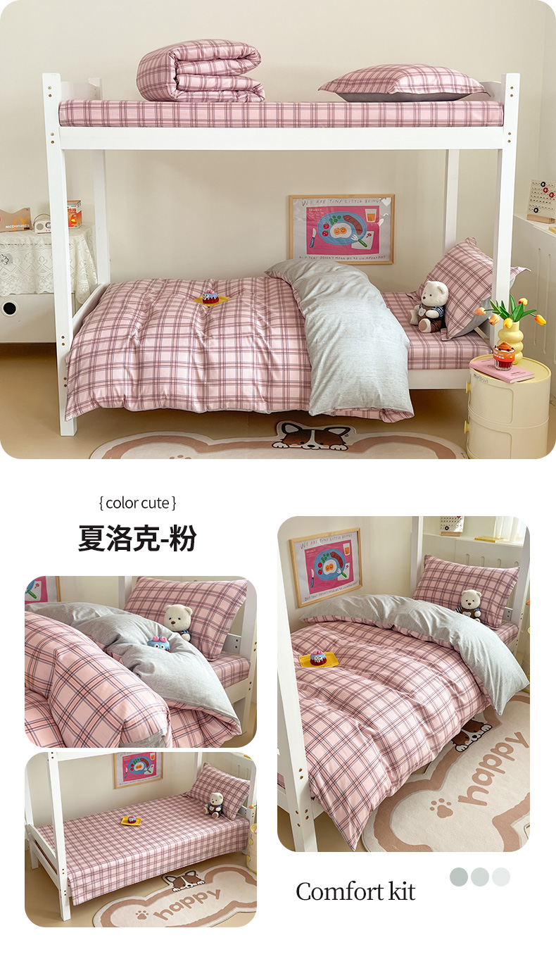 商品名称:绵庭家纺 2024新款全棉印花学生季宿舍三件套 夏洛克 粉