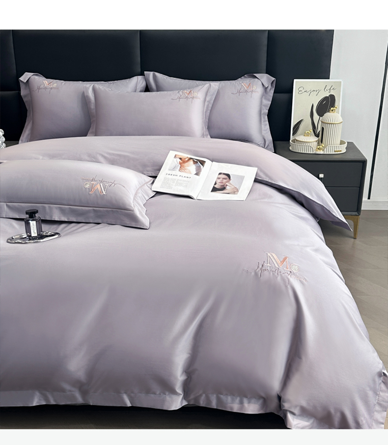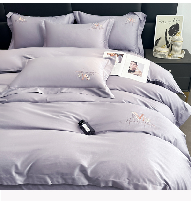 琉宿家纺 2025新款50s双股长绒棉绣花四件套 倾世红颜-紫灰