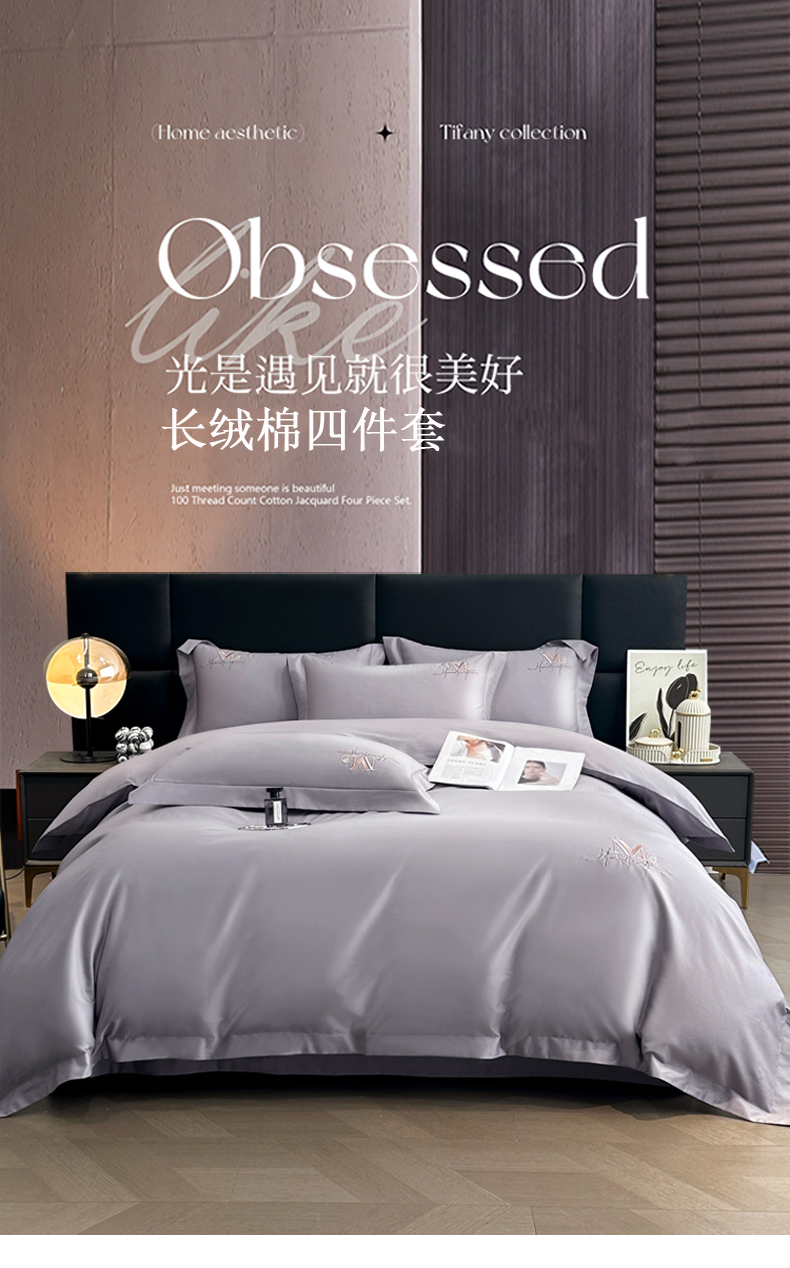(总)琉宿家纺 2025新款50s双股长绒棉提花宽边工艺四件套,蒂娜-灰色,蒂娜-奶白,花漫影-豆沙,花漫影-浅香槟,枫洛(粉玉),枫洛(清新兰),曼琳(豆沙),曼琳(灰)