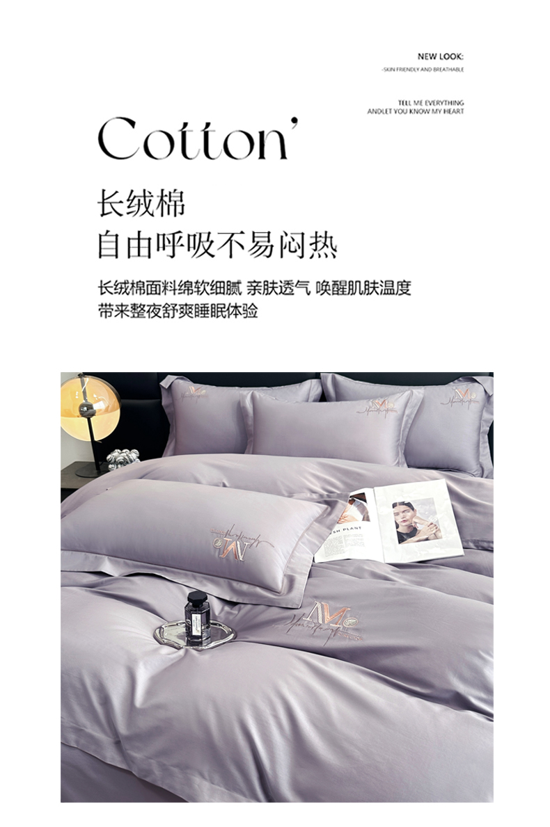 商品名称:琉宿家纺 2025新款50s双股长绒棉绣花四件套 倾世红颜-紫灰