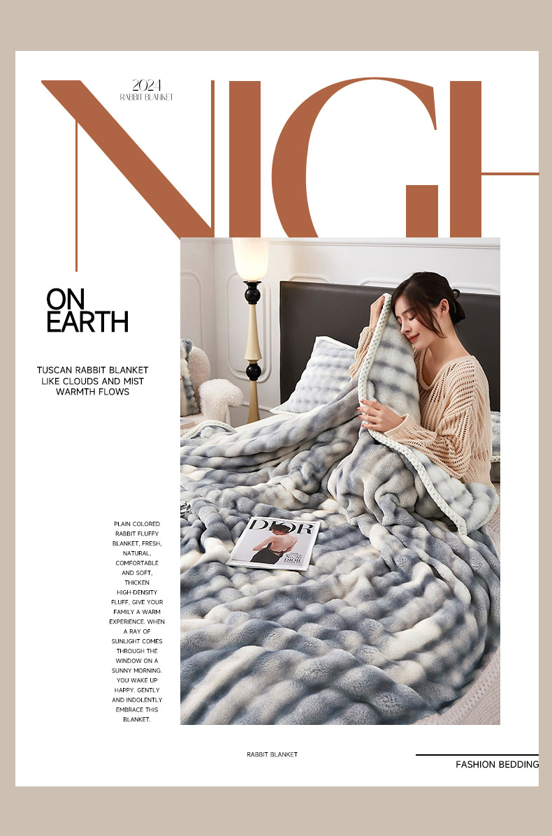肖恩毯业 2025新款托斯卡纳兔毛绒毛毯 托斯-渣蓝