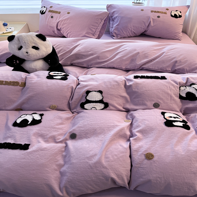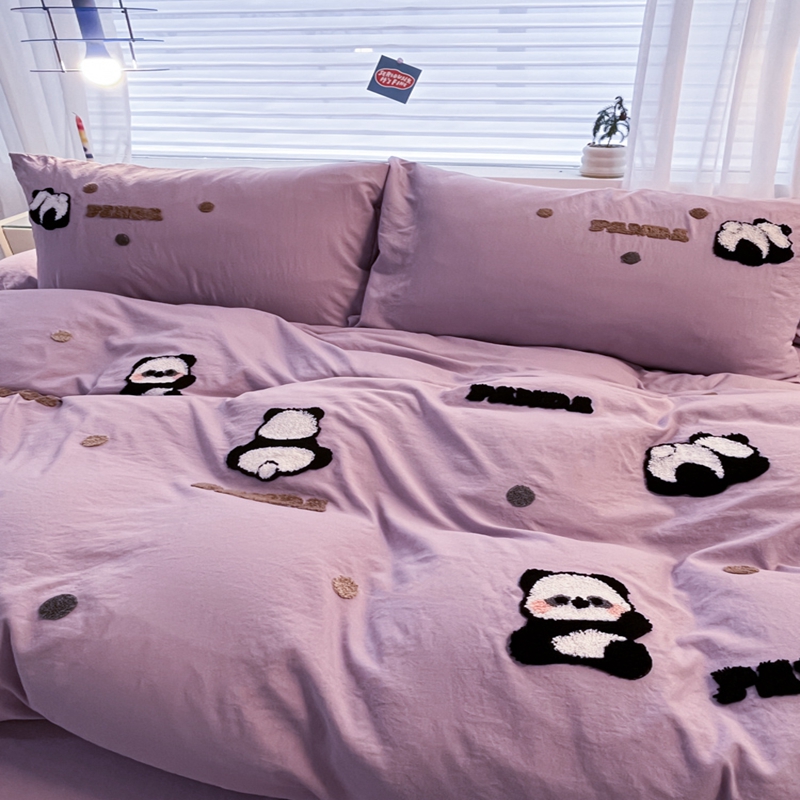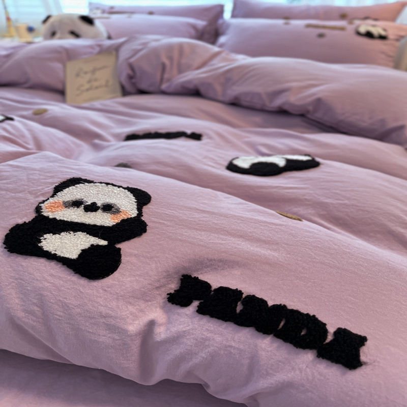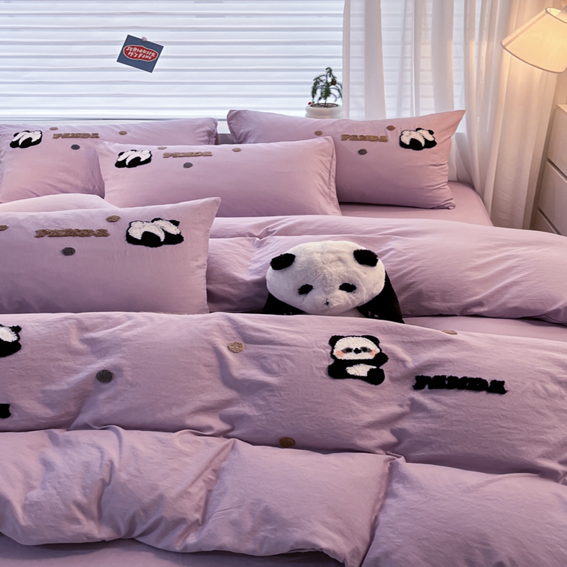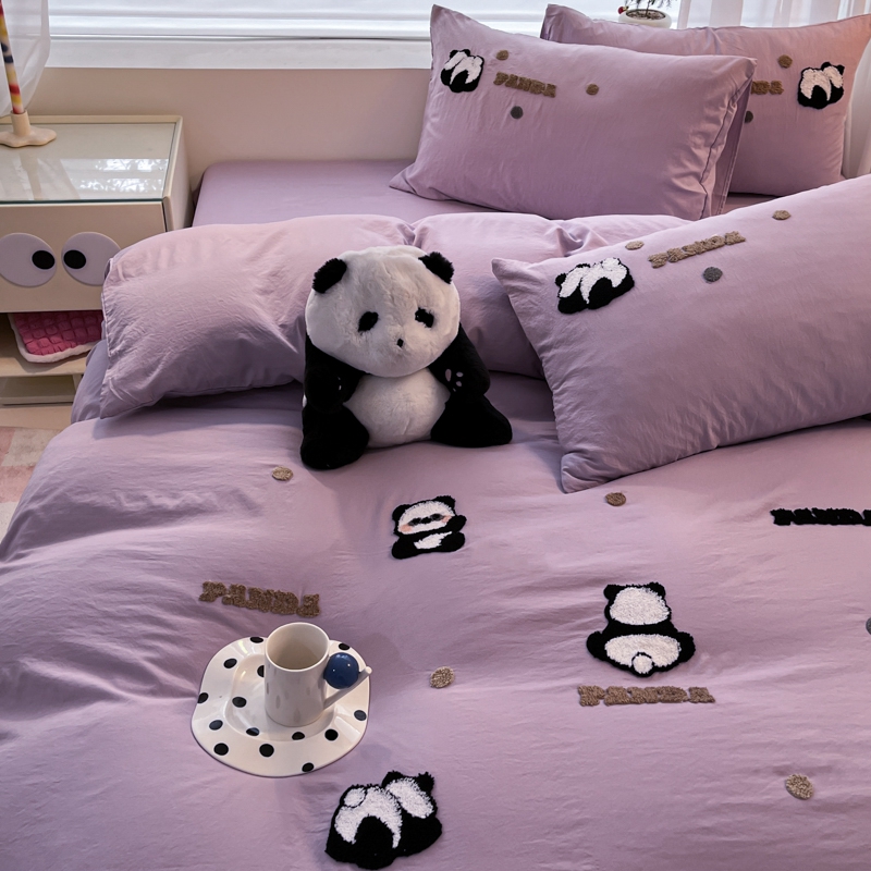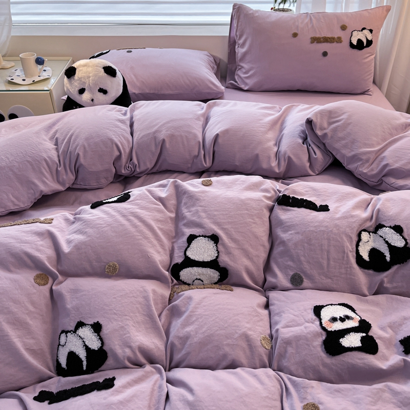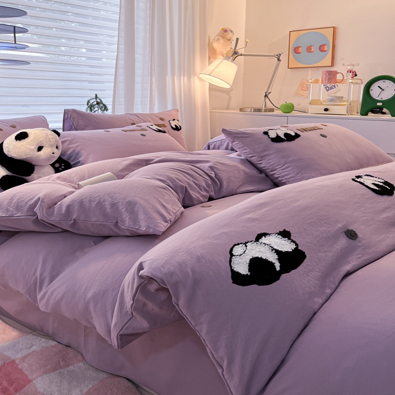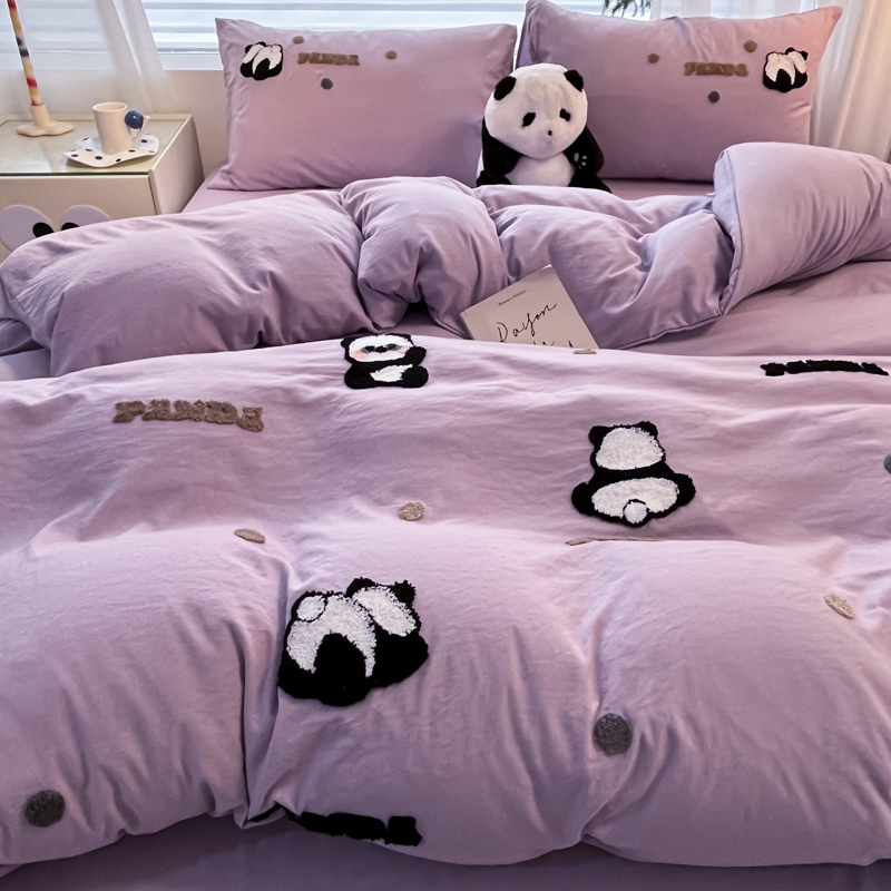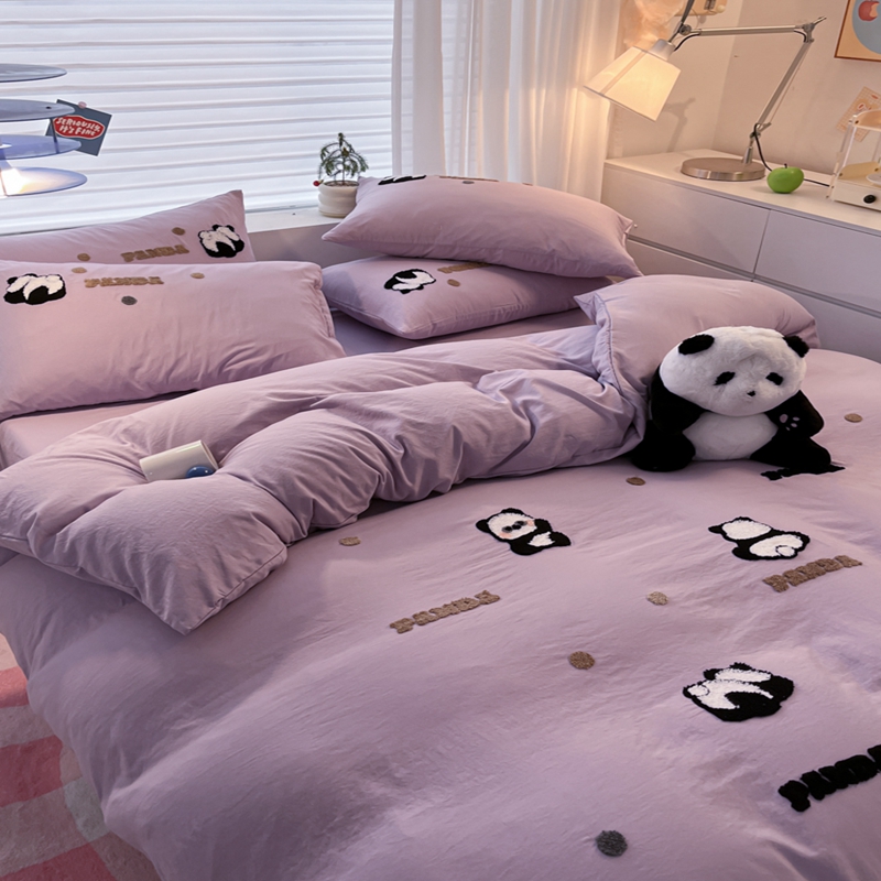 当前位置: 91家纺网 > 商品网购 > 床品套件 > 四件套 > 毛巾绣四件套 > 玉海棠家纺 2024新款毛巾绣系列四件套-熊猫 熊猫-紫