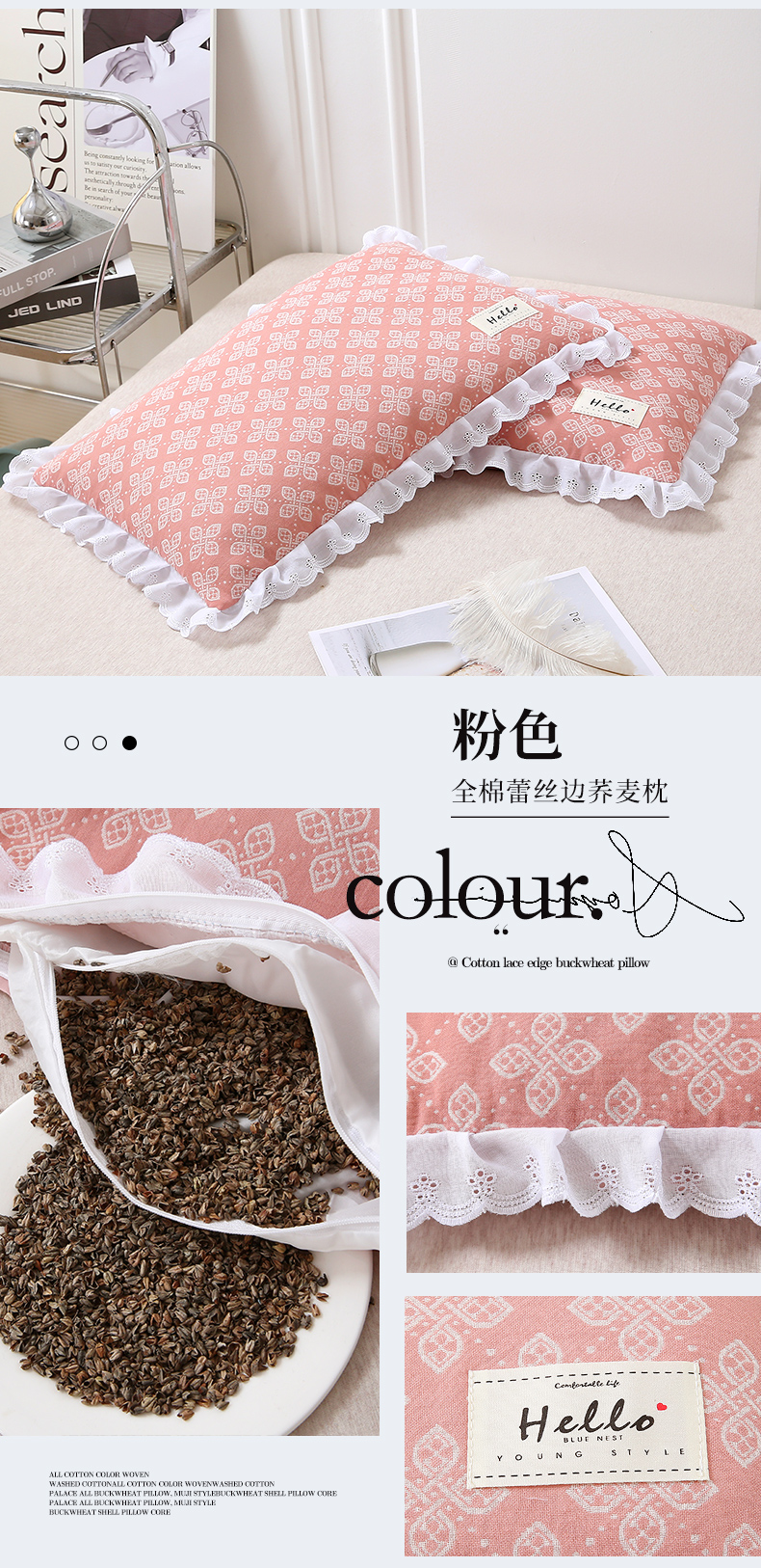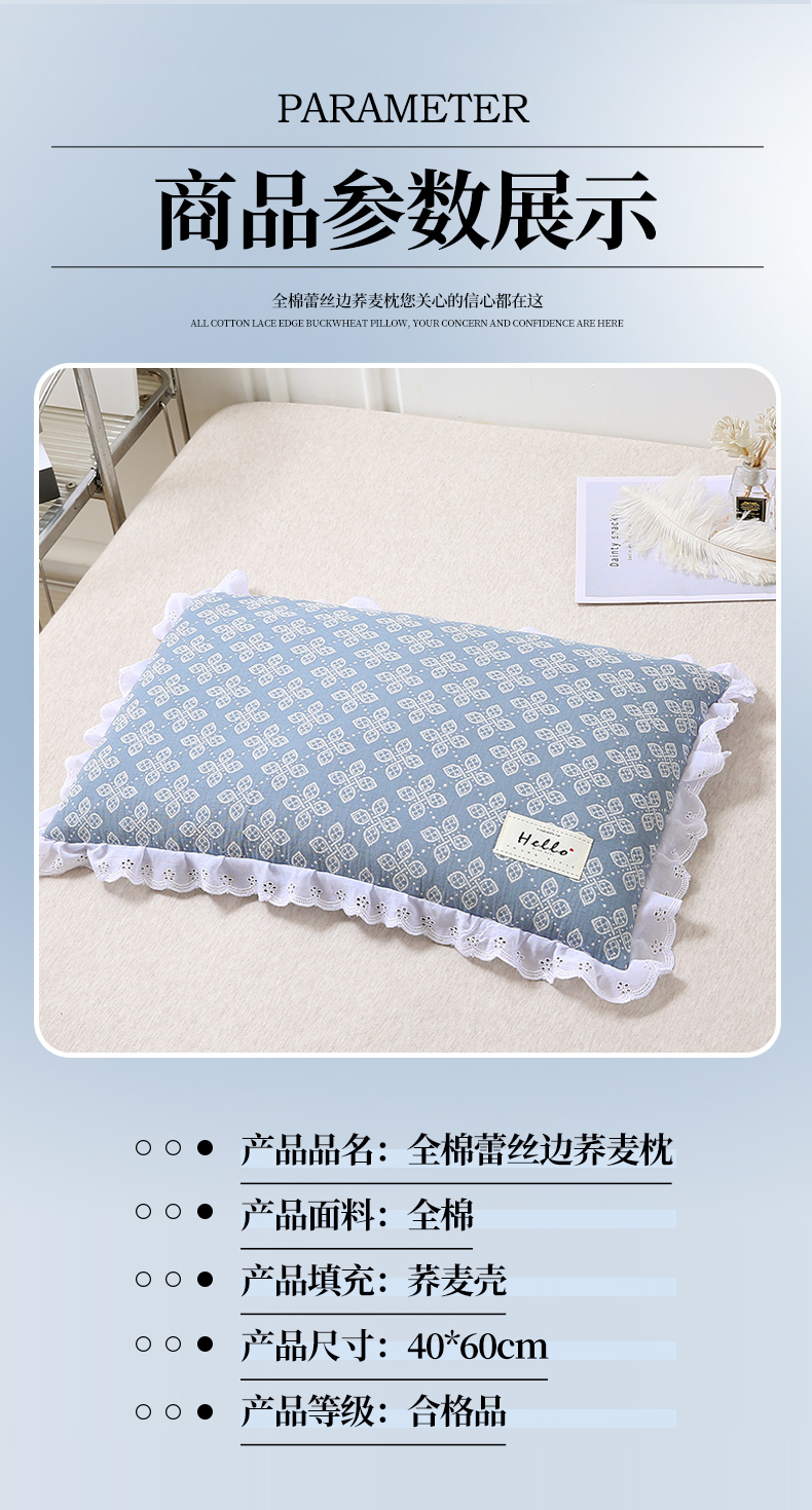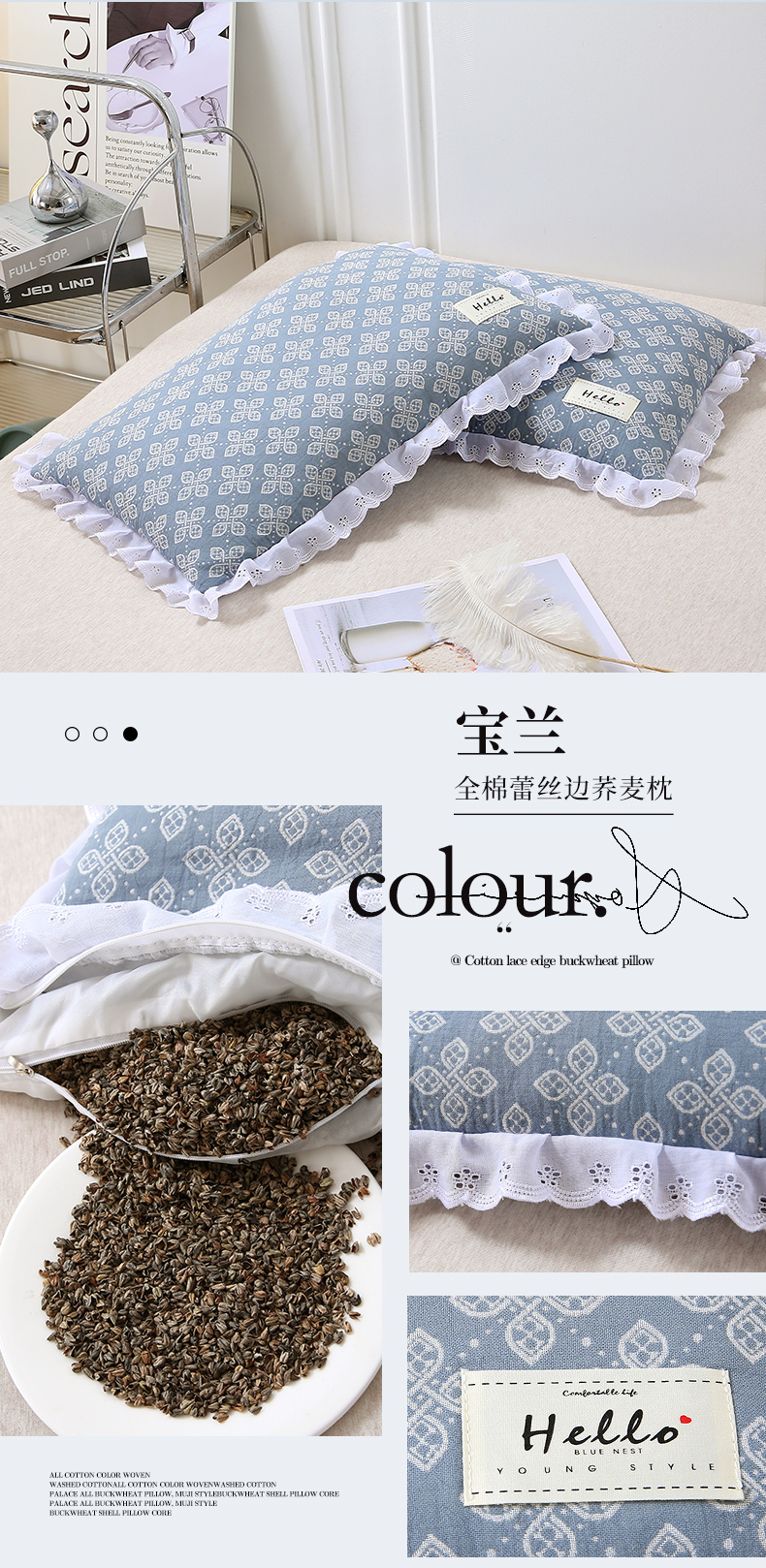 当前位置: 91家纺网 > 商品网购 > 枕头/枕芯/保健枕/颈椎枕 > 普通枕芯 > 梦叶草 2024新款全棉蕾丝花边全荞麦枕枕芯纯棉荞麦枕头 全棉蕾丝边荞麦枕-宝兰40*60cm/只