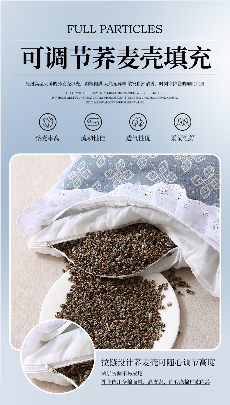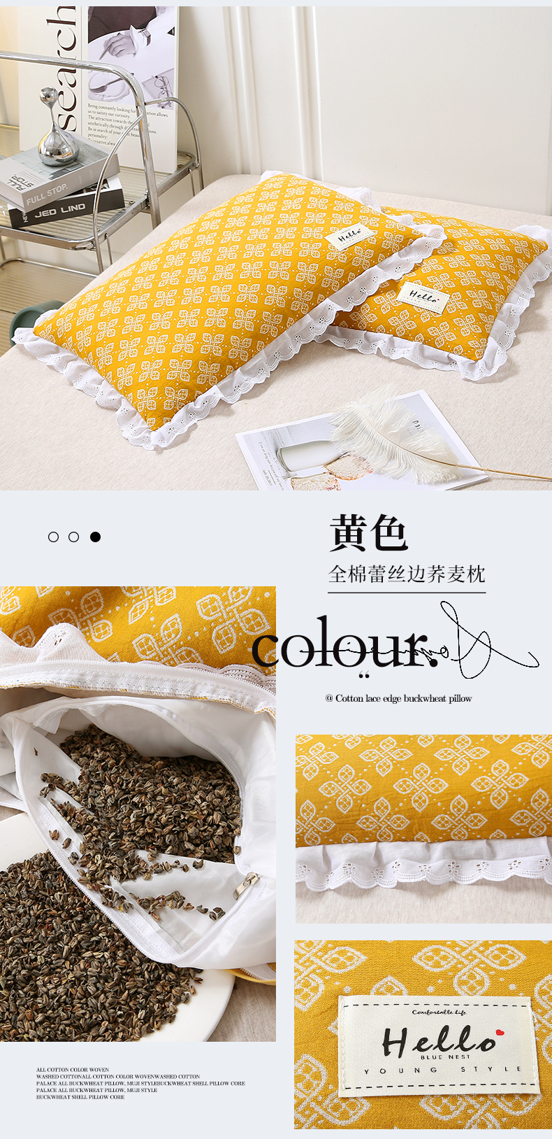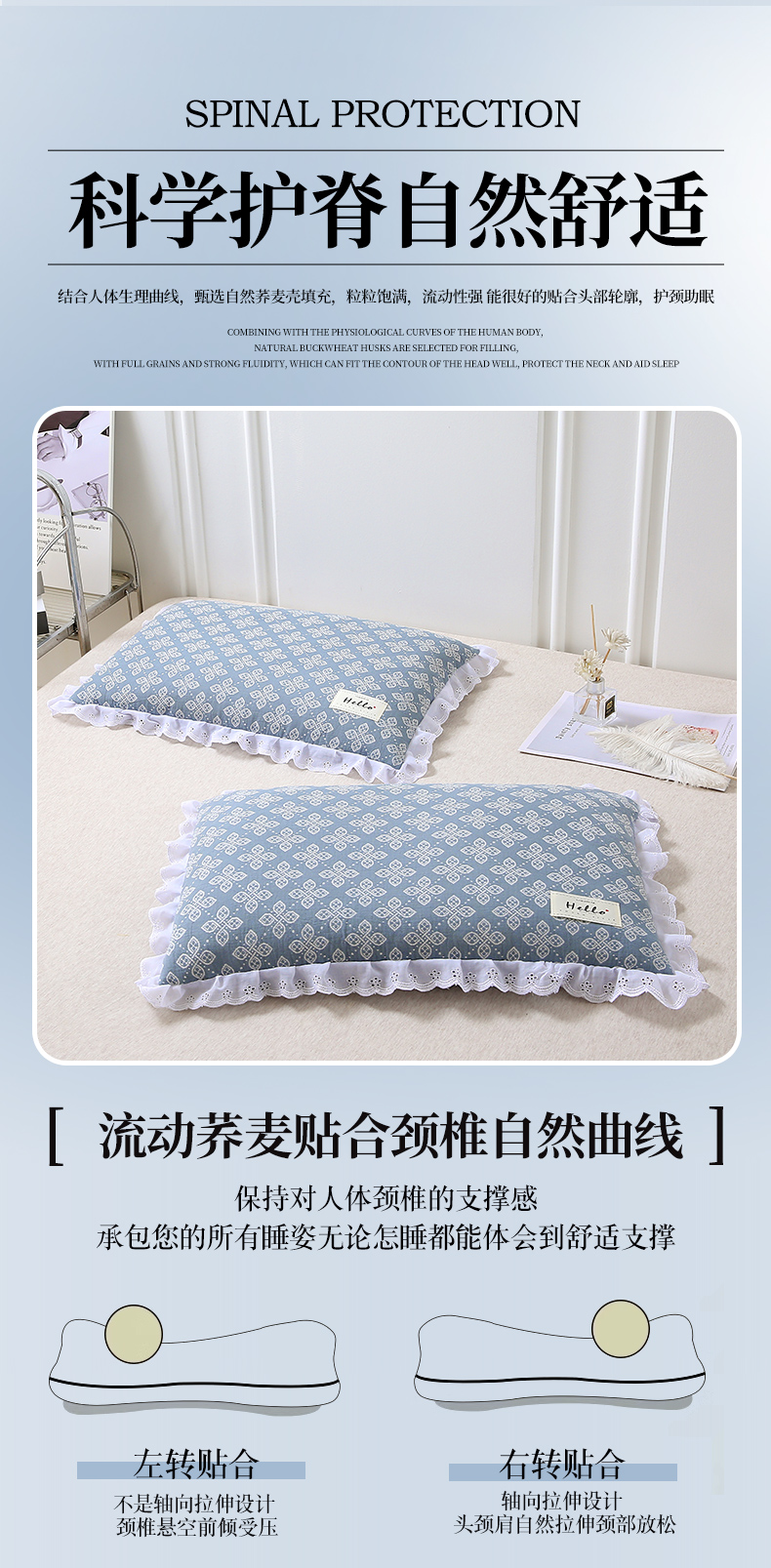 当前位置: 91家纺网 > 商品网购 > 枕头/枕芯/保健枕/颈椎枕 > 普通枕芯 > 梦叶草 2024新款全棉蕾丝花边全荞麦枕枕芯纯棉荞麦枕头 全棉蕾丝边荞麦枕-宝兰40*60cm/只