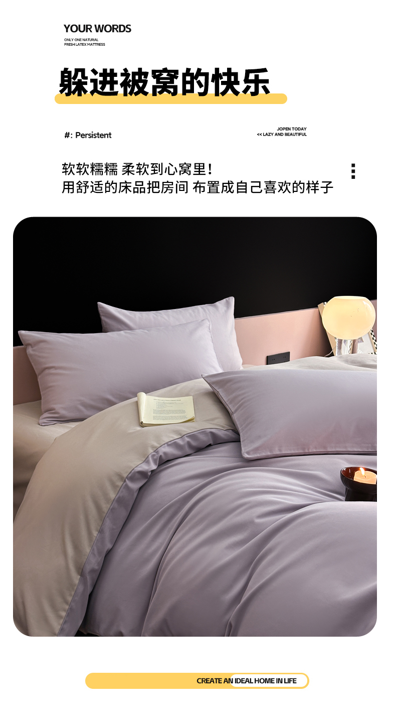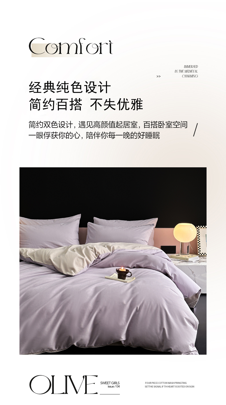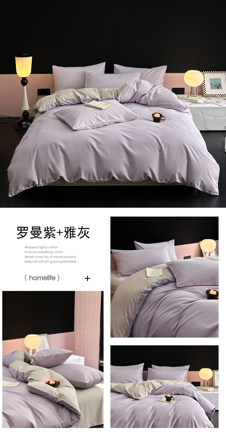 商品名称:柠馨 2024新款全棉磨毛纯色四件套-赫尔墨斯系列 5罗曼紫+雅灰