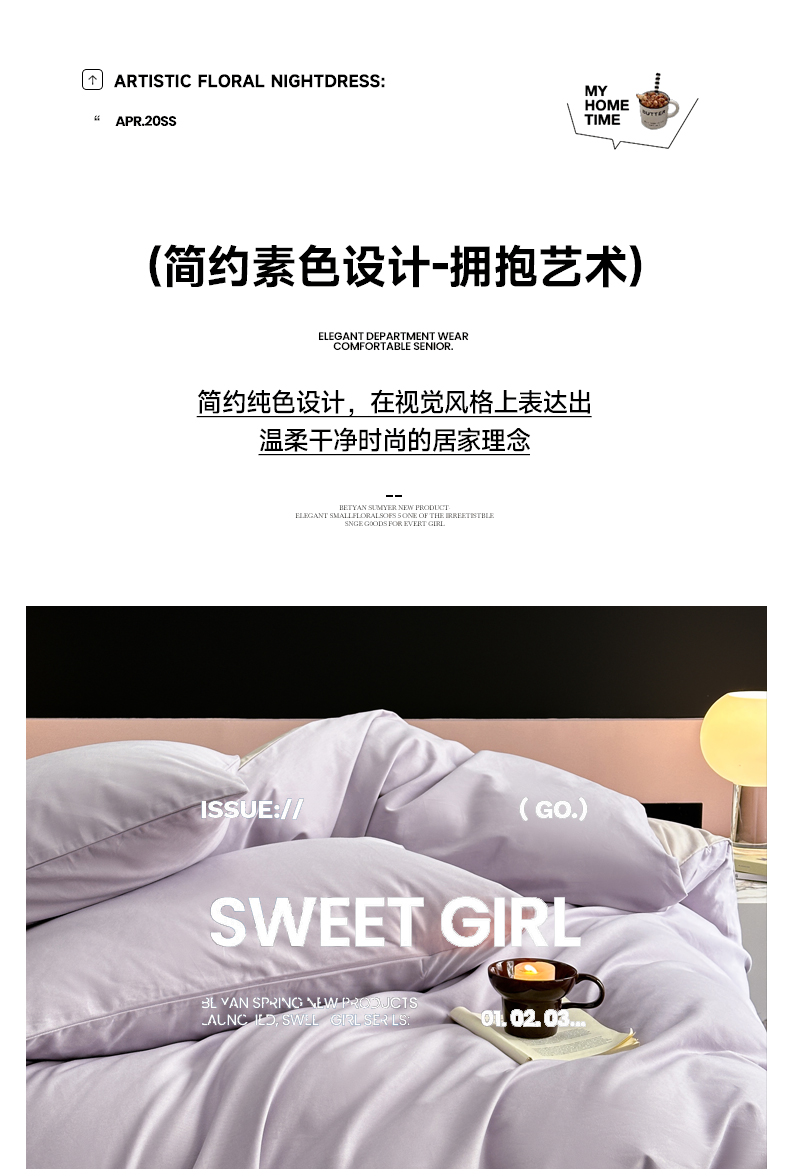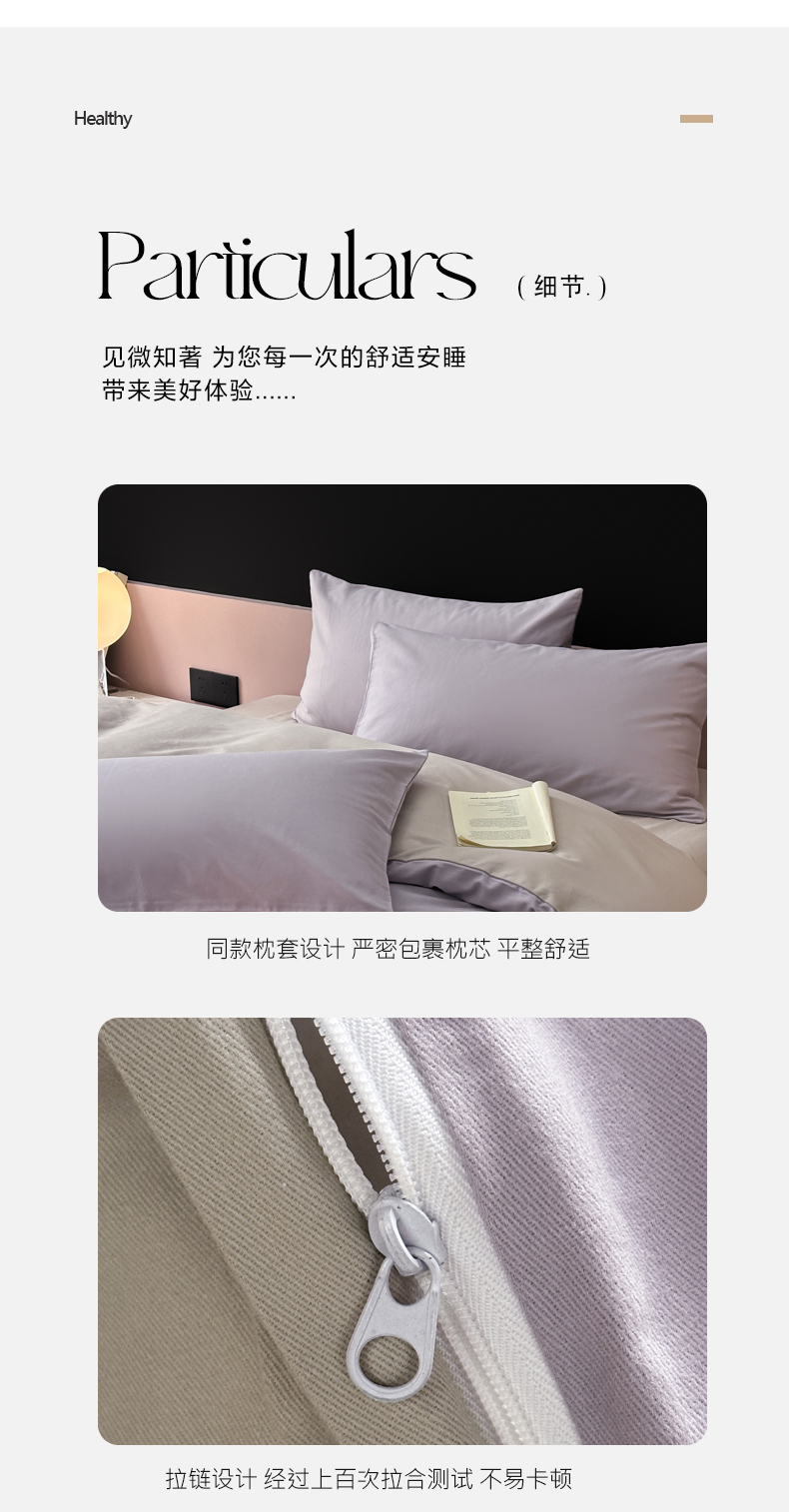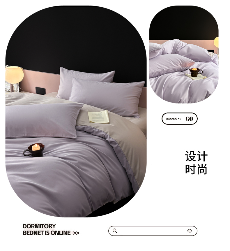 商品名称:柠馨 2024新款全棉磨毛纯色四件套-赫尔墨斯系列 5罗曼紫+雅灰