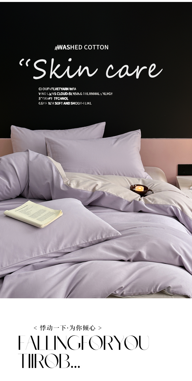 柠馨 2024新款全棉磨毛纯色四件套-赫尔墨斯系列 5罗曼紫+雅灰