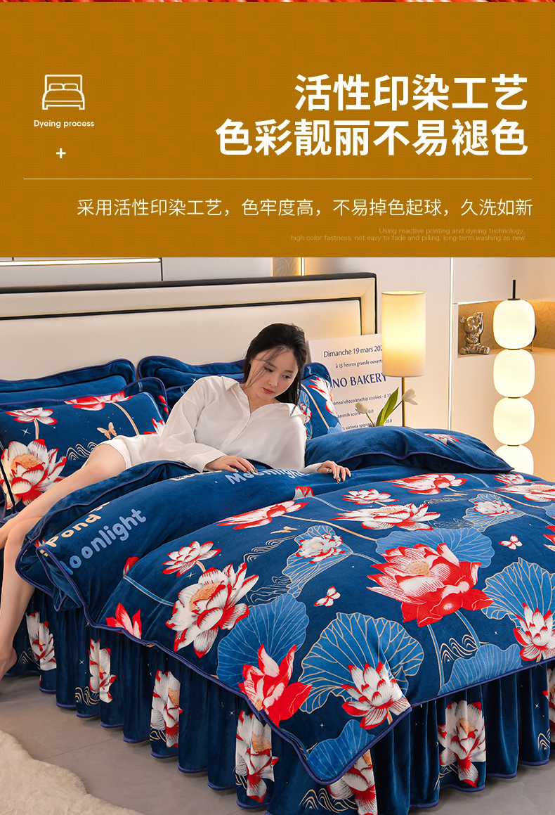 馨梦缘 2025新款小包边款牛奶绒8.5斤高克重牛奶绒金雕绒床裙款四件套 富贵花开
