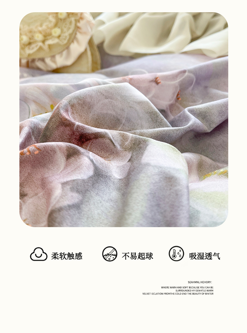 (总)网红馆(ck家纺) 2025新款兔毛绒牛奶绒床盖四件套-花悠然,花悠然-粉色,花悠然-绿色,花悠然-紫色