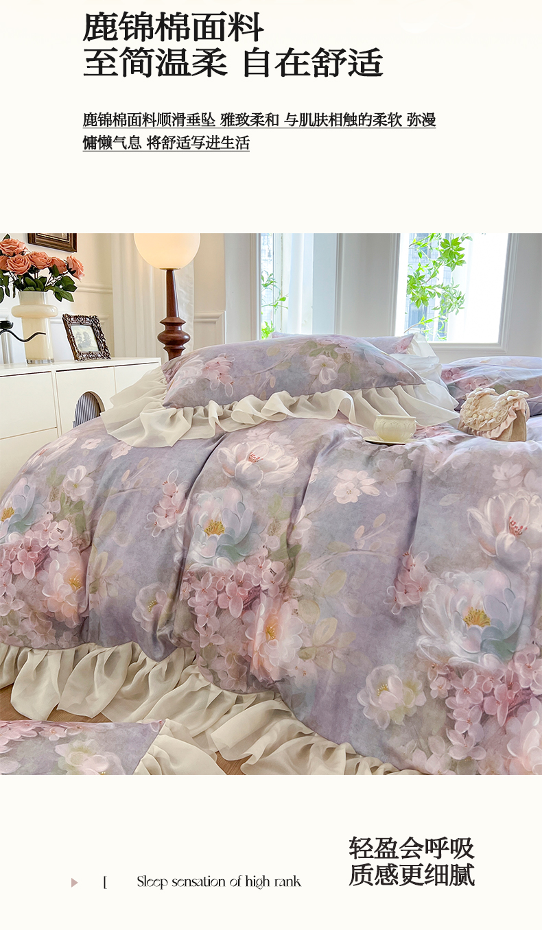 商品名称:网红馆(ck家纺)2025新款鹿锦棉印花床裙四件套 悠姿