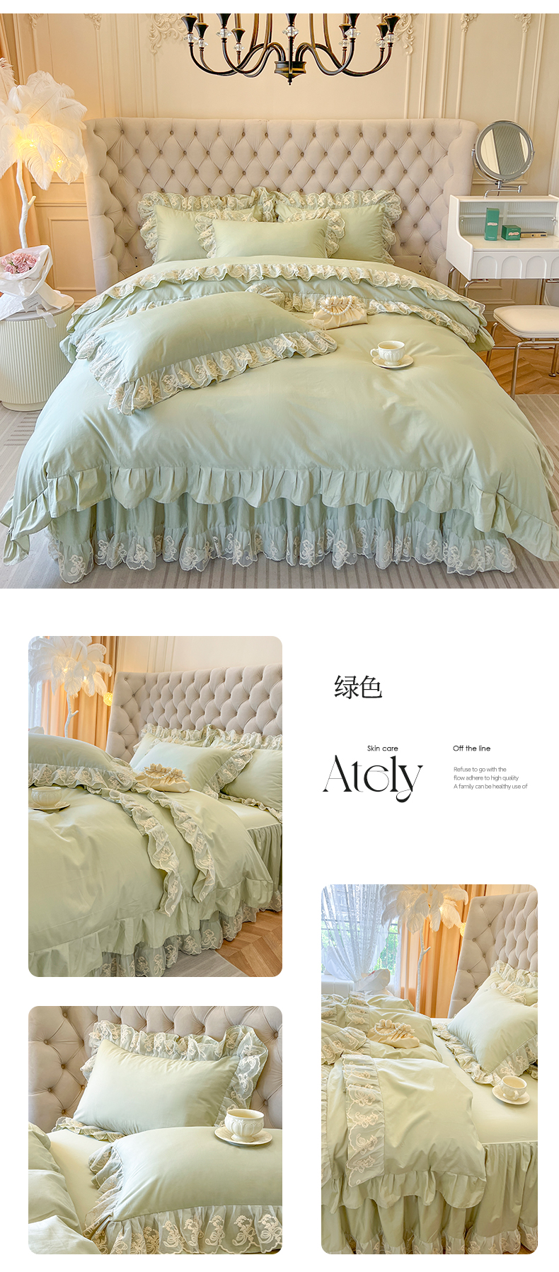 商品名称:网红馆(ck家纺) 2025新款花之茵系列13372全棉床裙四件套 花之茵-绿色