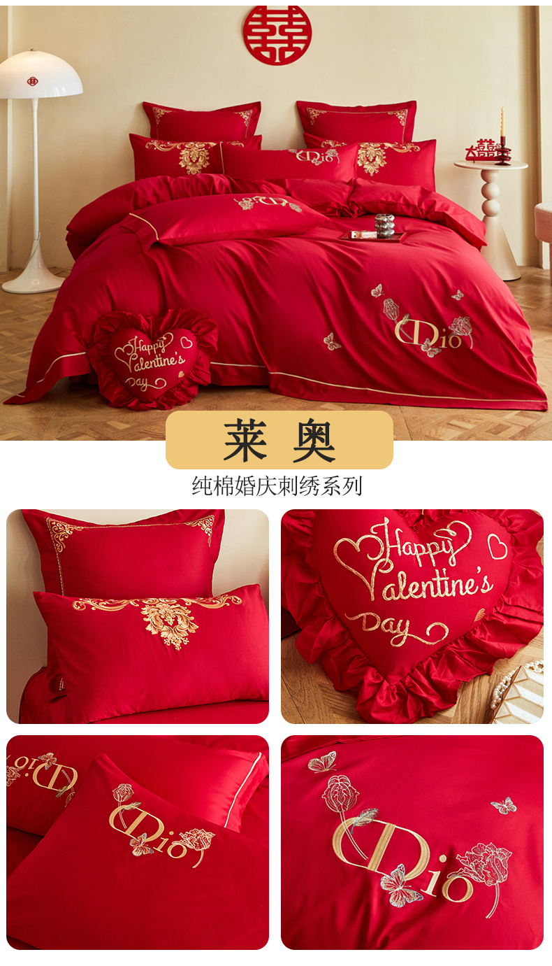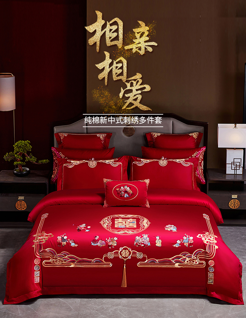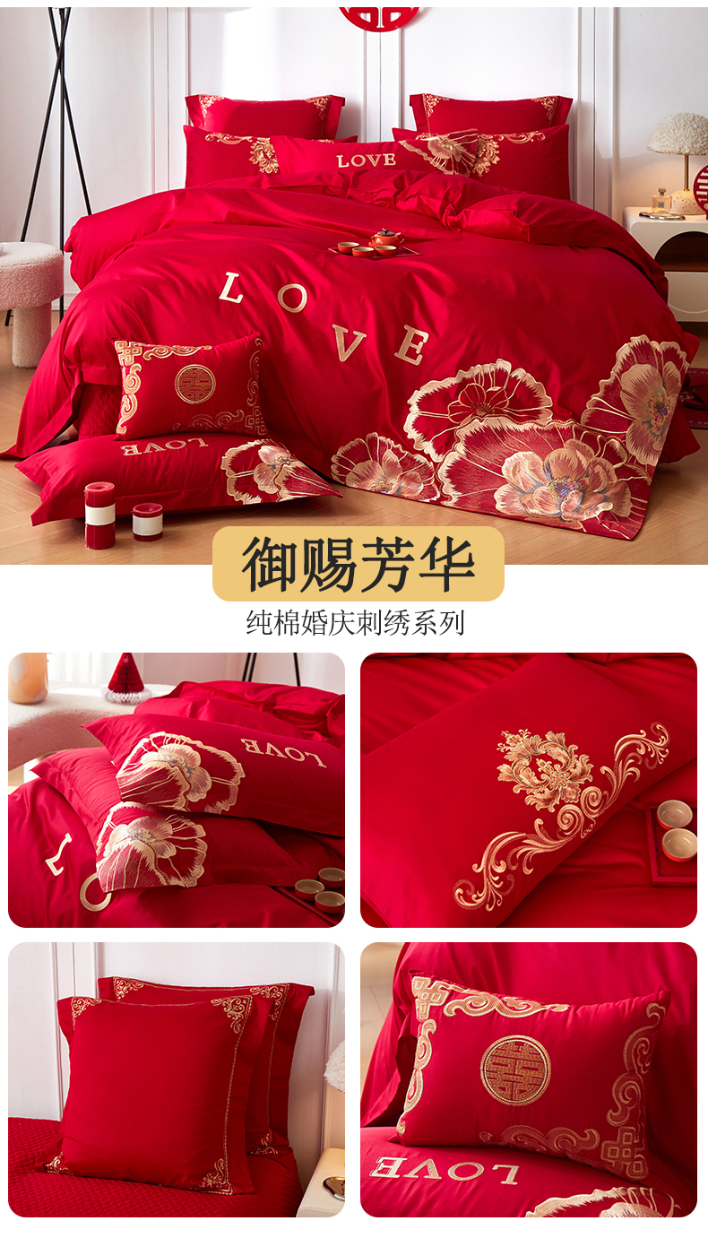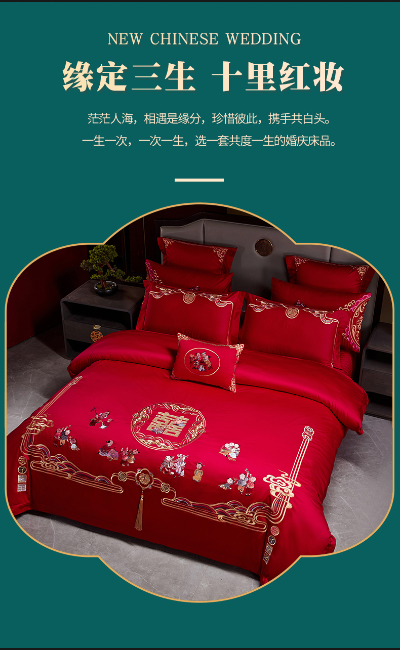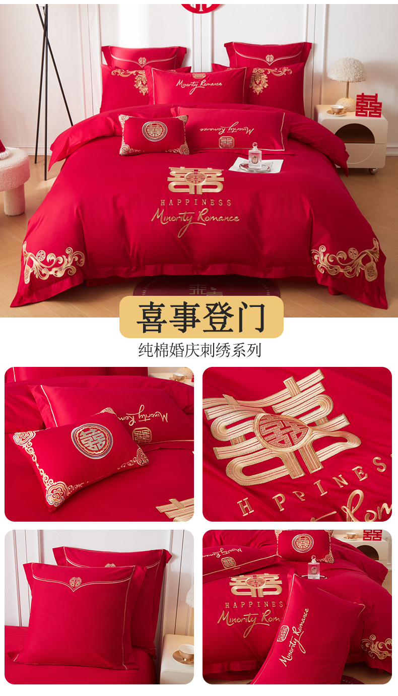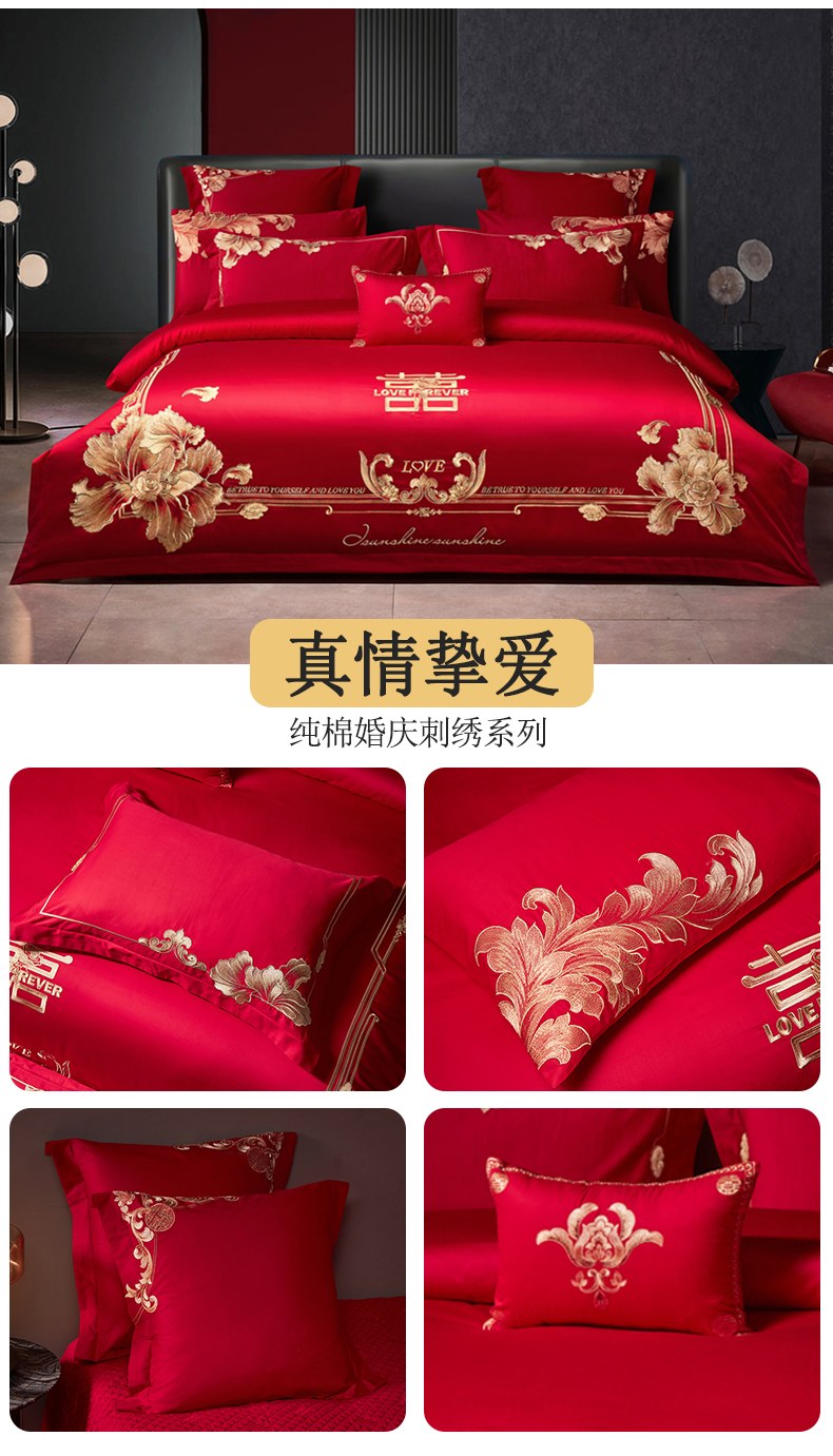 当前位置: 91家纺网 > 商品网购 > 床品套件 > 四件套 > 婚庆四件套 > 宏羽纺家纺 2024新款13372纯棉小红书跑量款婚庆套件系列 相亲相爱