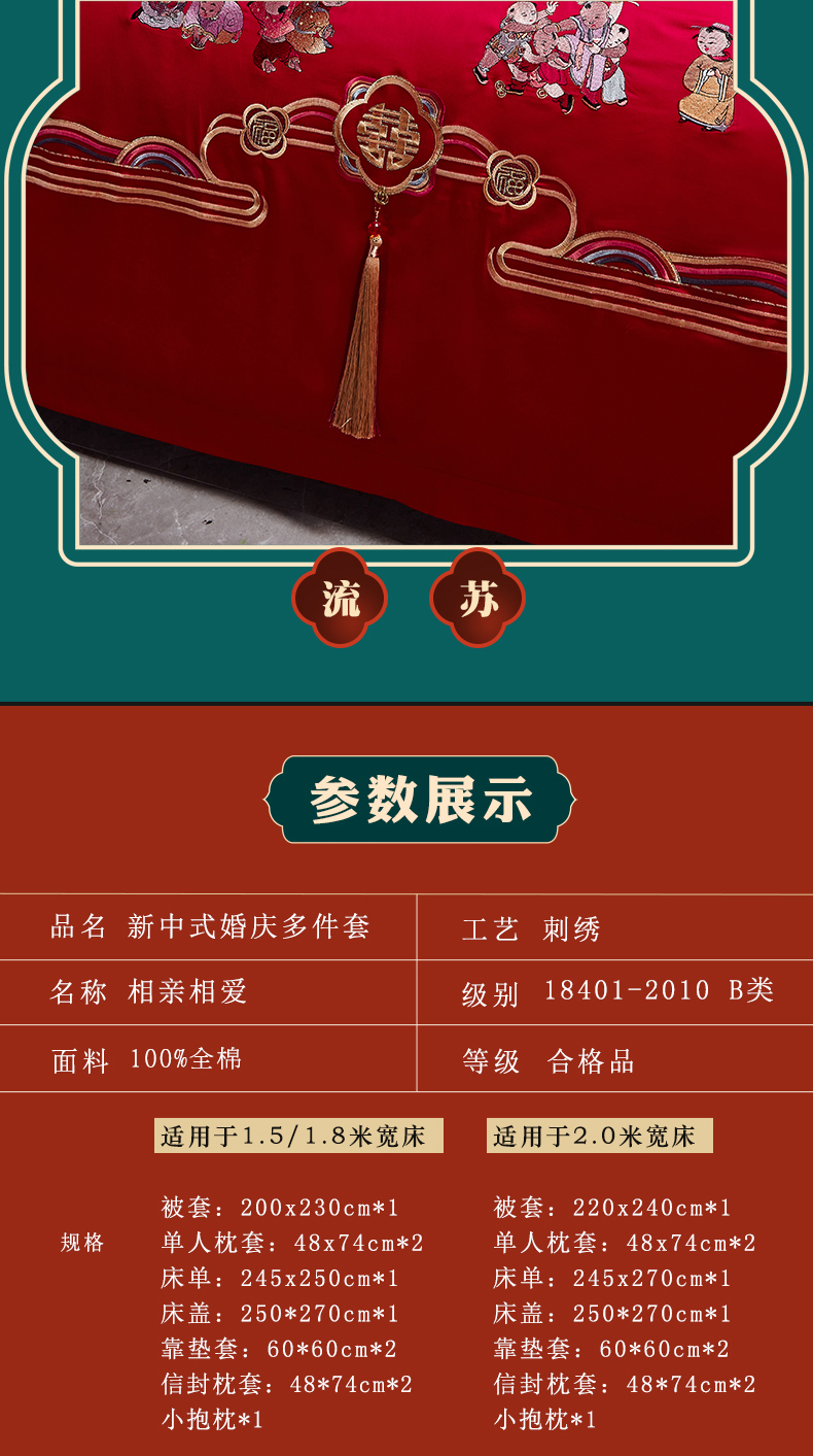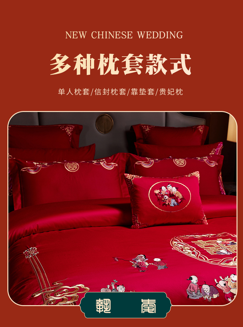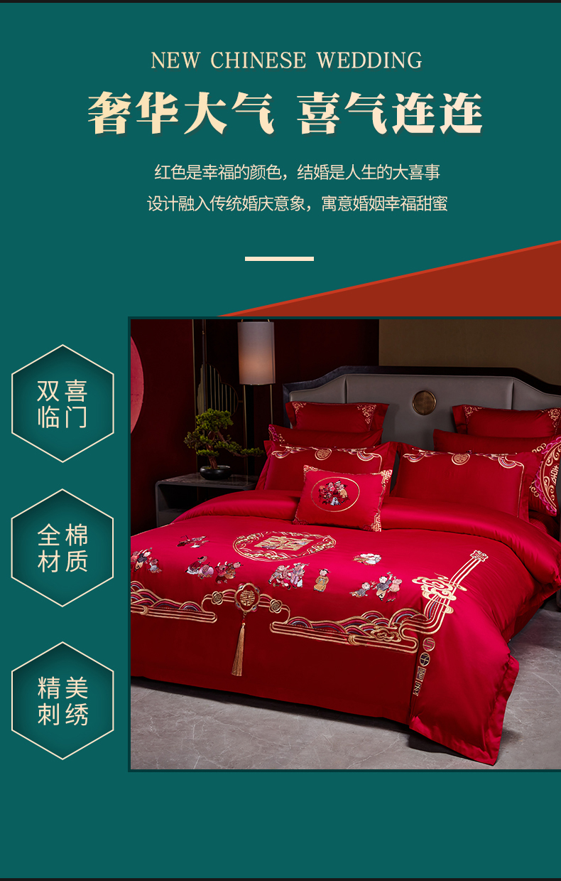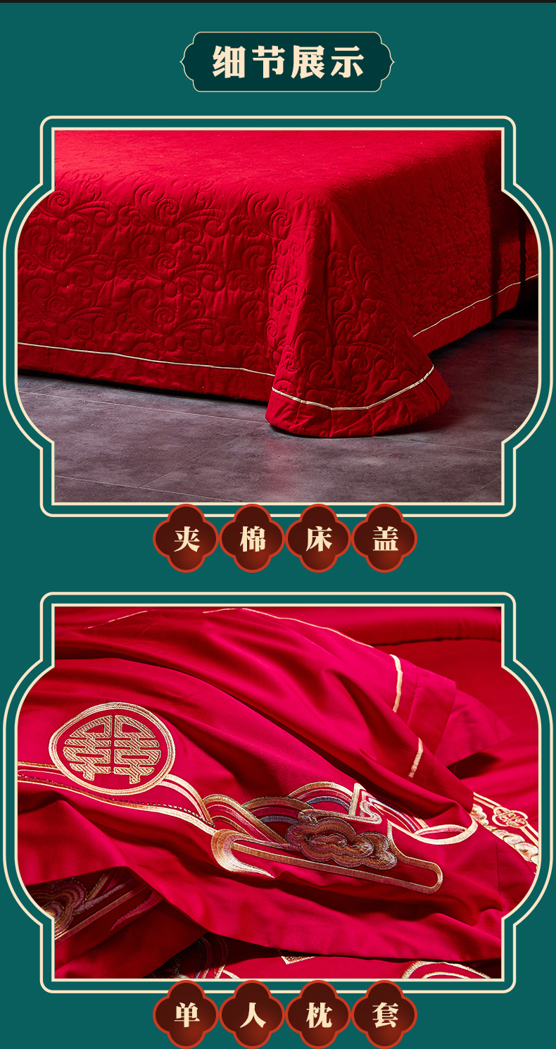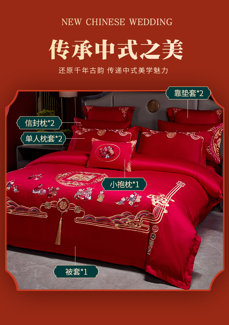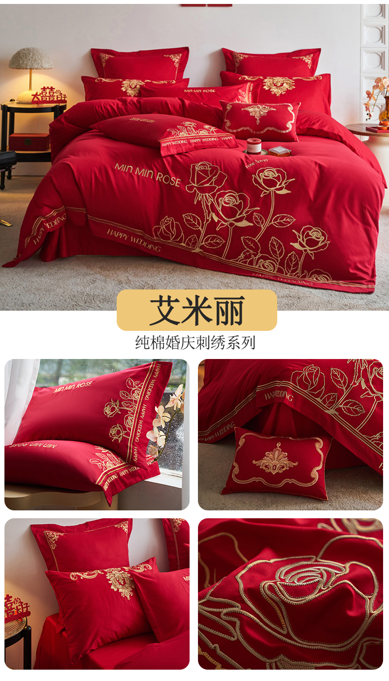 当前位置: 91家纺网 > 商品网购 > 床品套件 > 四件套 > 婚庆四件套 > 宏羽纺家纺 2024新款13372纯棉小红书跑量款婚庆套件系列 相亲相爱