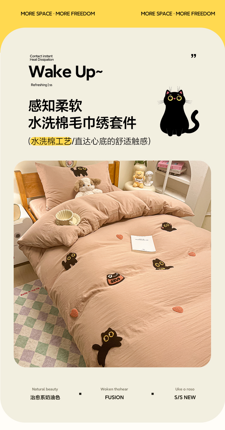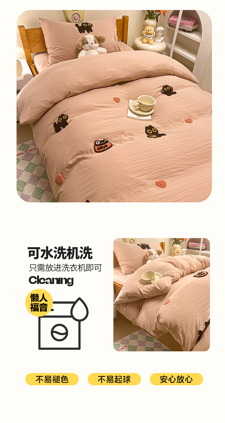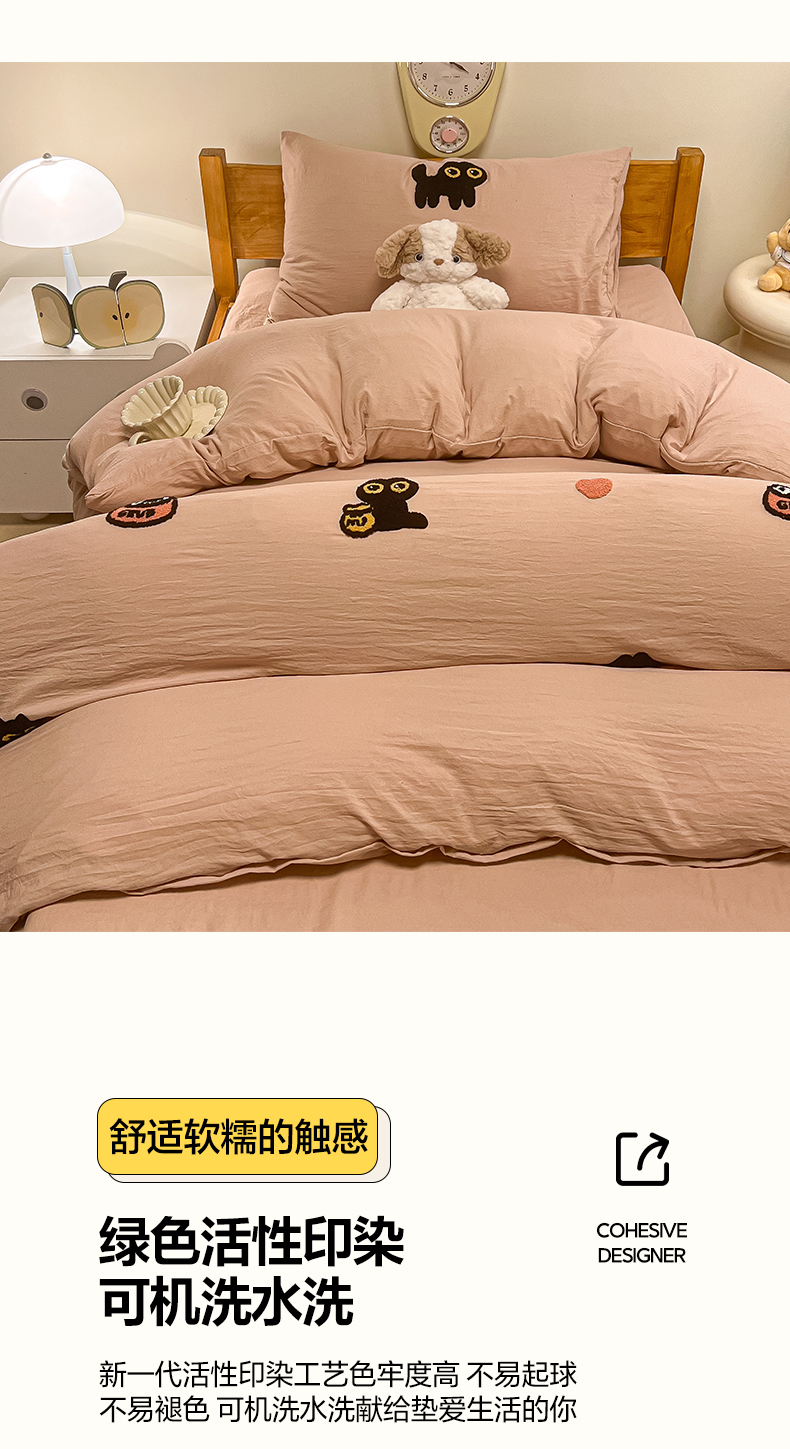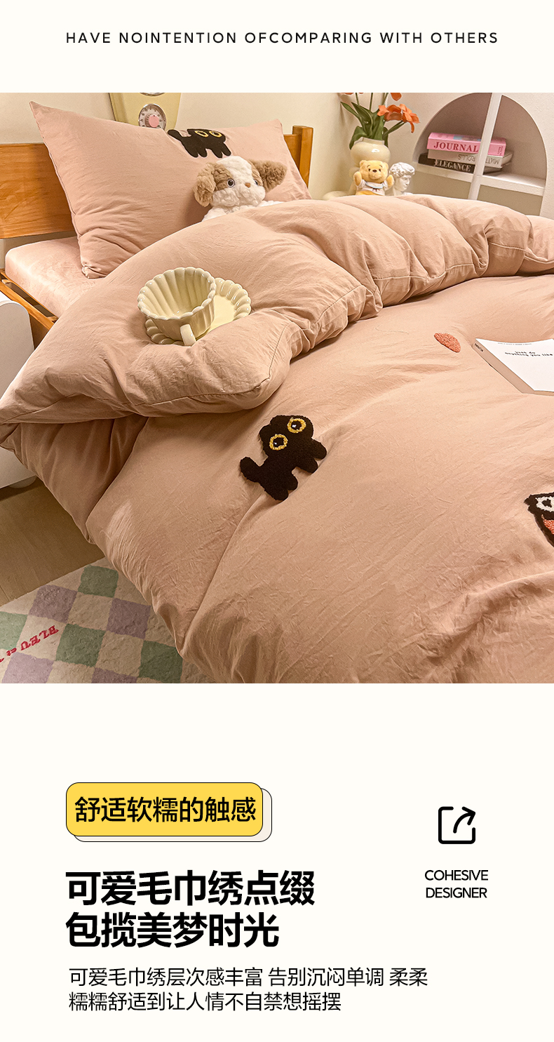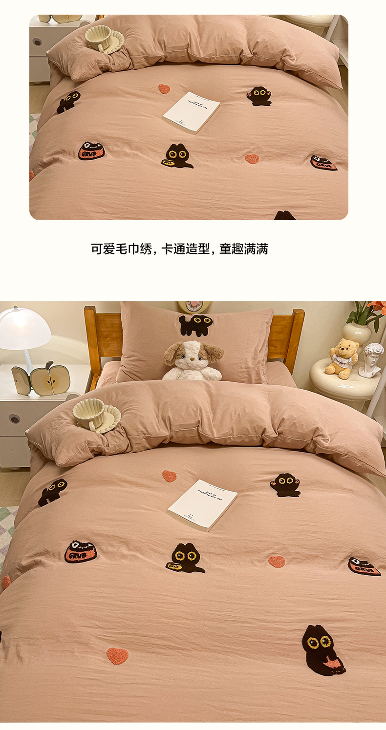 • 91家纺网 家纺一手货源 找家纺 韩巢家纺 2024新款学生宿舍寝室上下铺超柔水洗棉毛巾绣单件被套-幸运猫 幸运猫奶咖