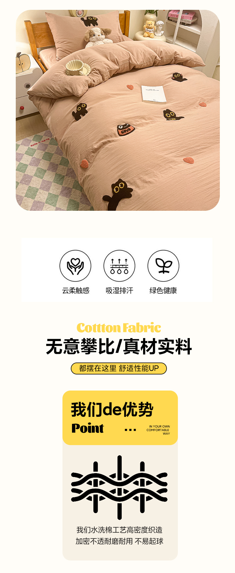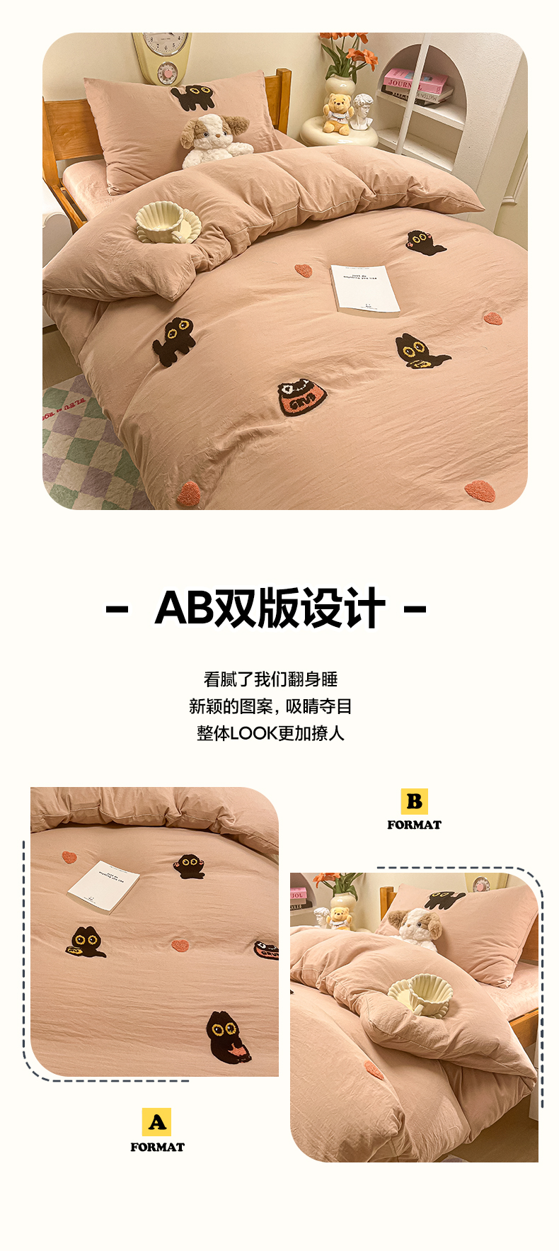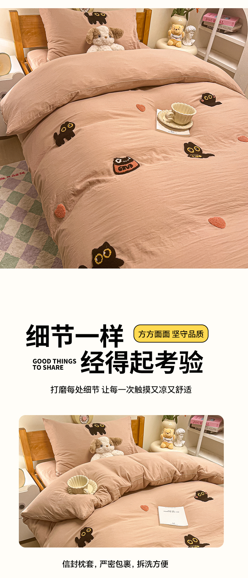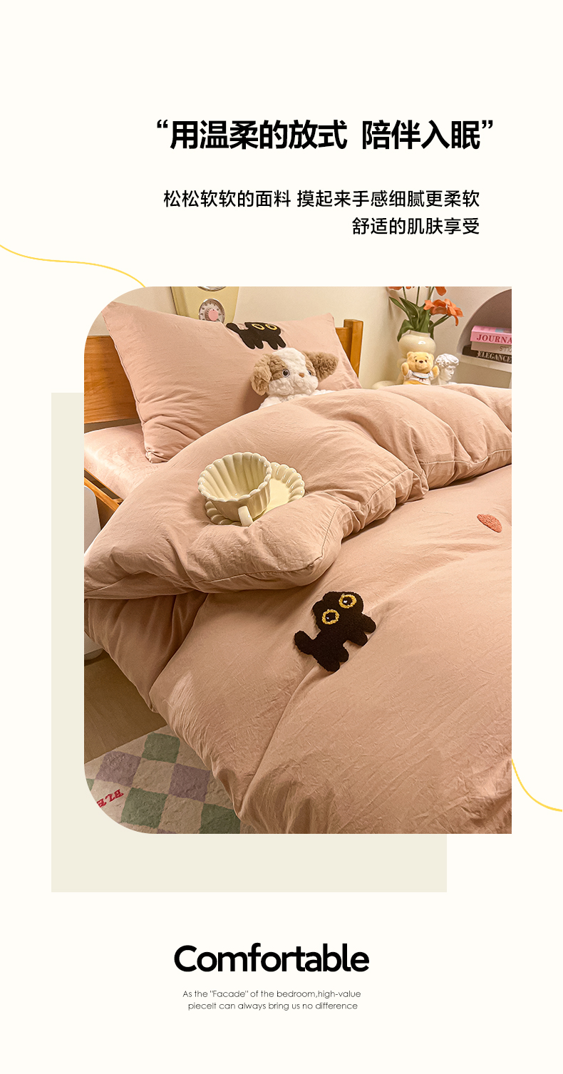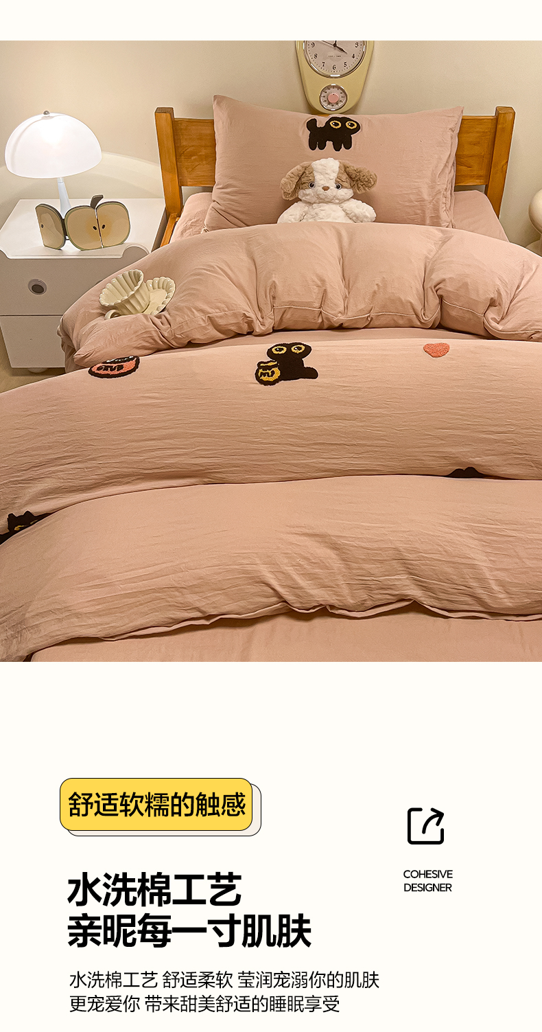 • 91家纺网 家纺一手货源 找家纺 韩巢家纺 2024新款学生宿舍寝室上下铺超柔水洗棉毛巾绣单件被套-幸运猫 幸运猫奶咖