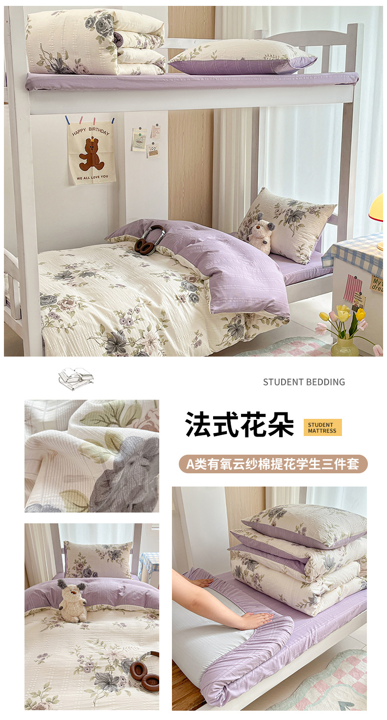 当前位置: 91家纺网 > 商品网购 > 床品套件 > 四件套 > 其它四件套 > 安哆啦家纺 2024新款A类有氧泡泡纱云纱棉学生季宿舍床三四件套 法式花朵