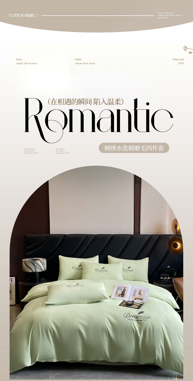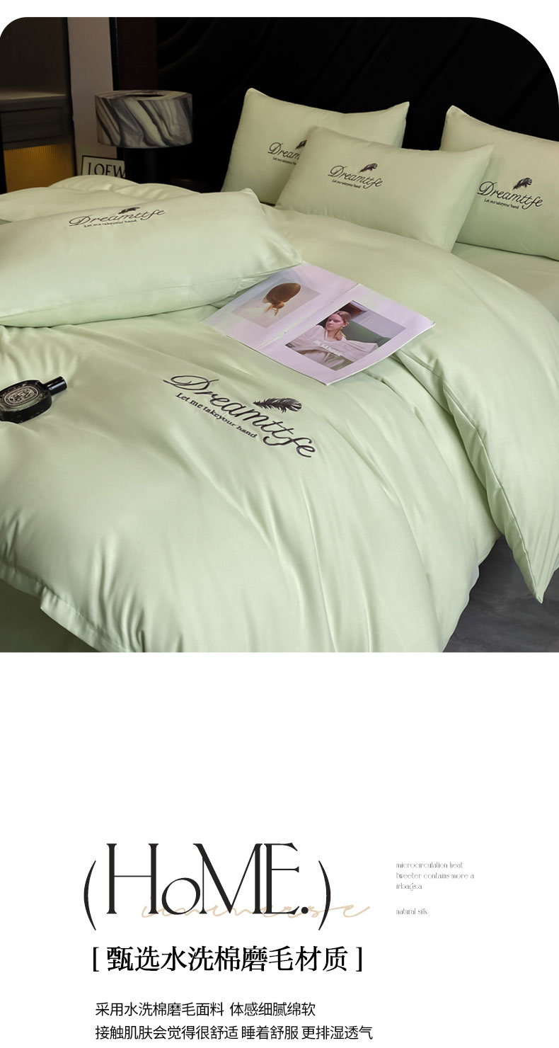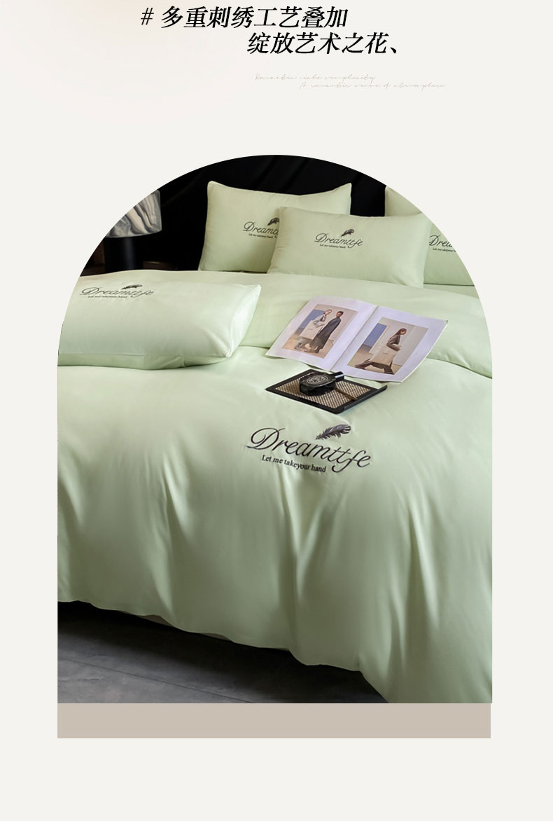 当前位置: 91家纺网 > 商品网购 > 床品套件 > 四件套 > 普通磨毛四件套 > 伊梵居 2025新款梦羽系列刺绣水洗棉磨毛四件套 梦羽-抹茶绿