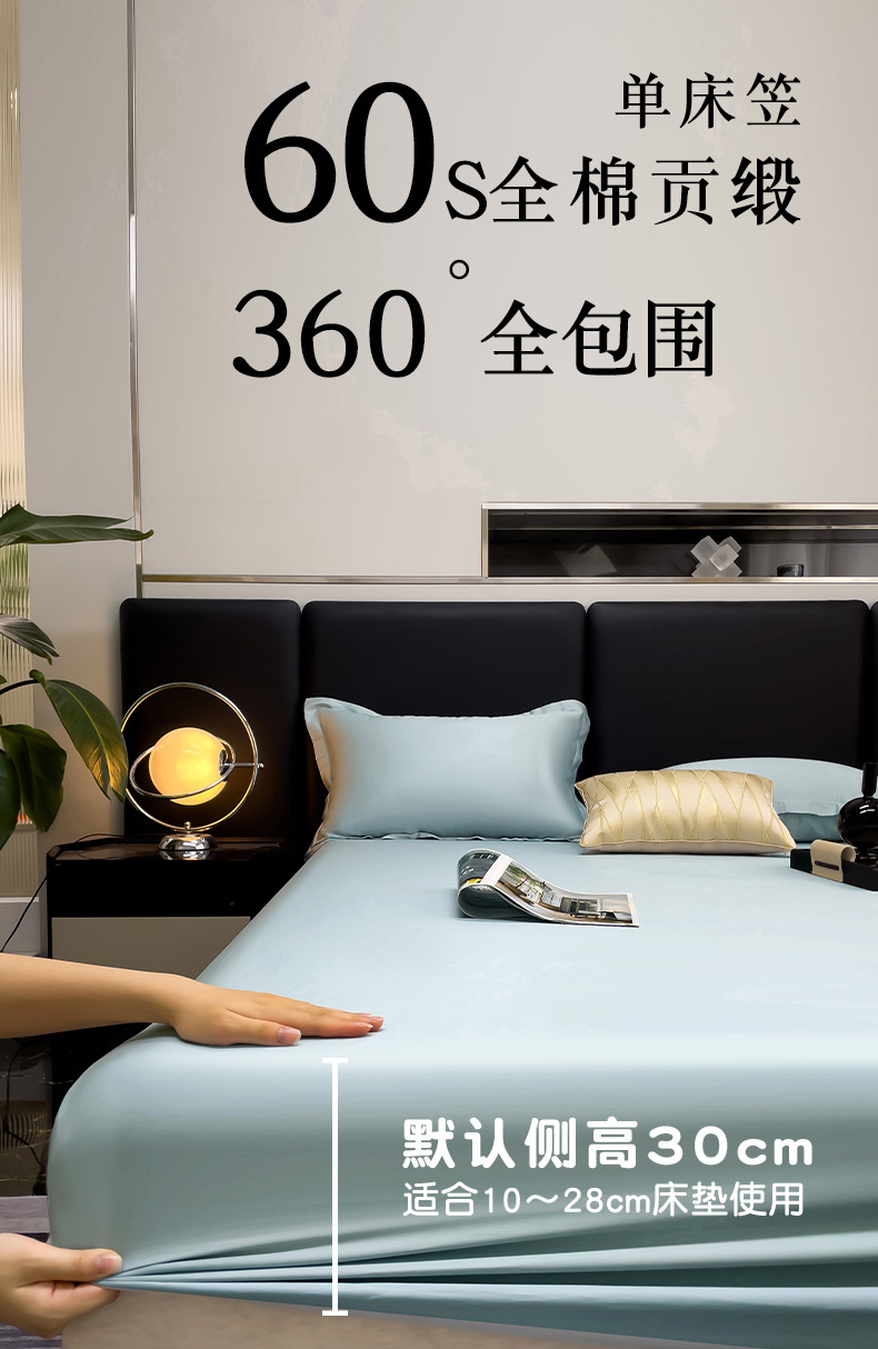 当前位置: 91家纺网 > 商品网购 > 床上用品 > 床笠 > 漫时光 2025新款60s全棉贡缎单床笠和单枕套 烟雨蓝