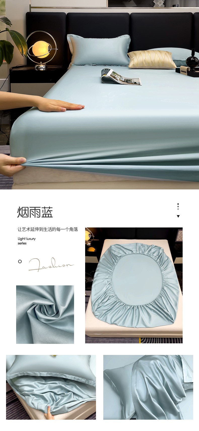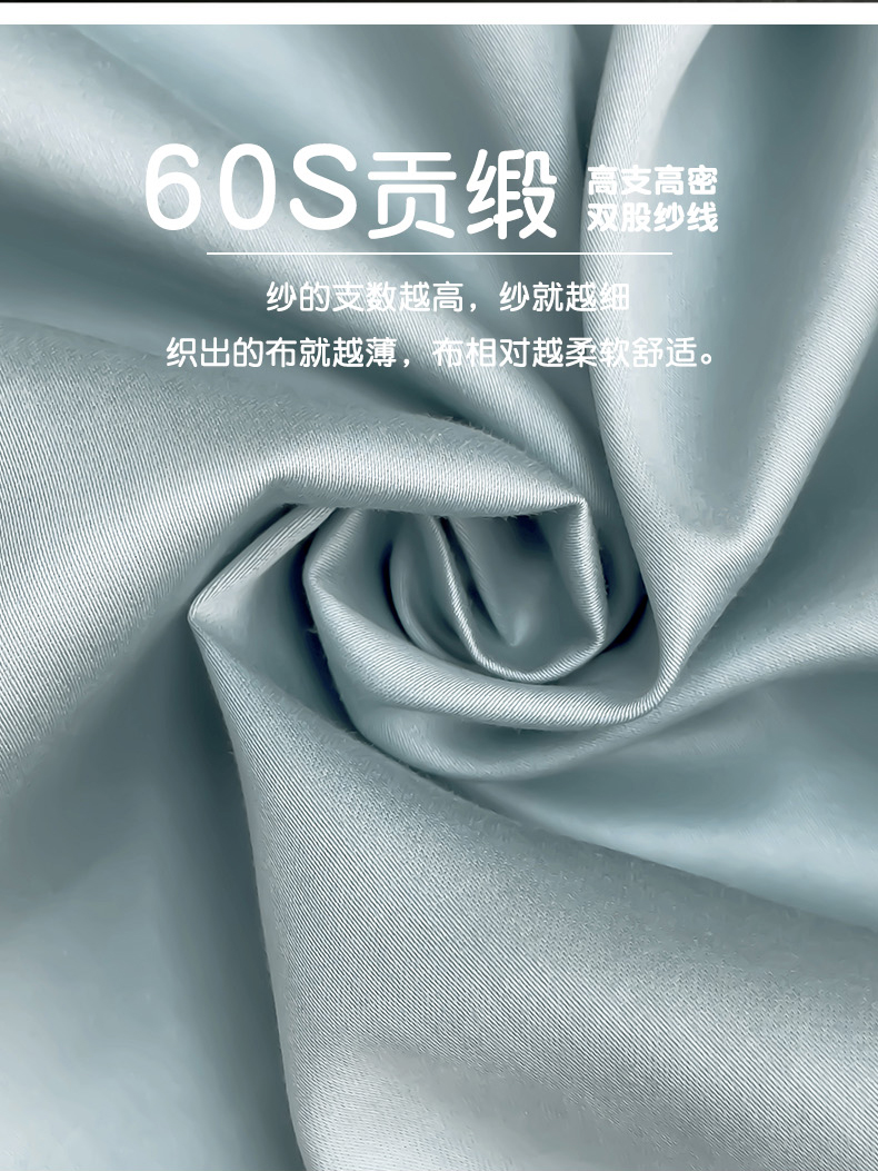 • 91家纺网 家纺一手货源 找家纺 漫时光 2025新款60s全棉贡缎单床笠和单枕套 烟雨蓝