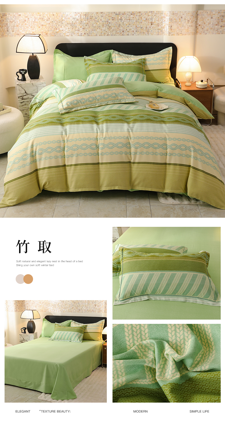 帛美家纺 2024新款加厚纯棉全棉磨毛印花四件套 竹取