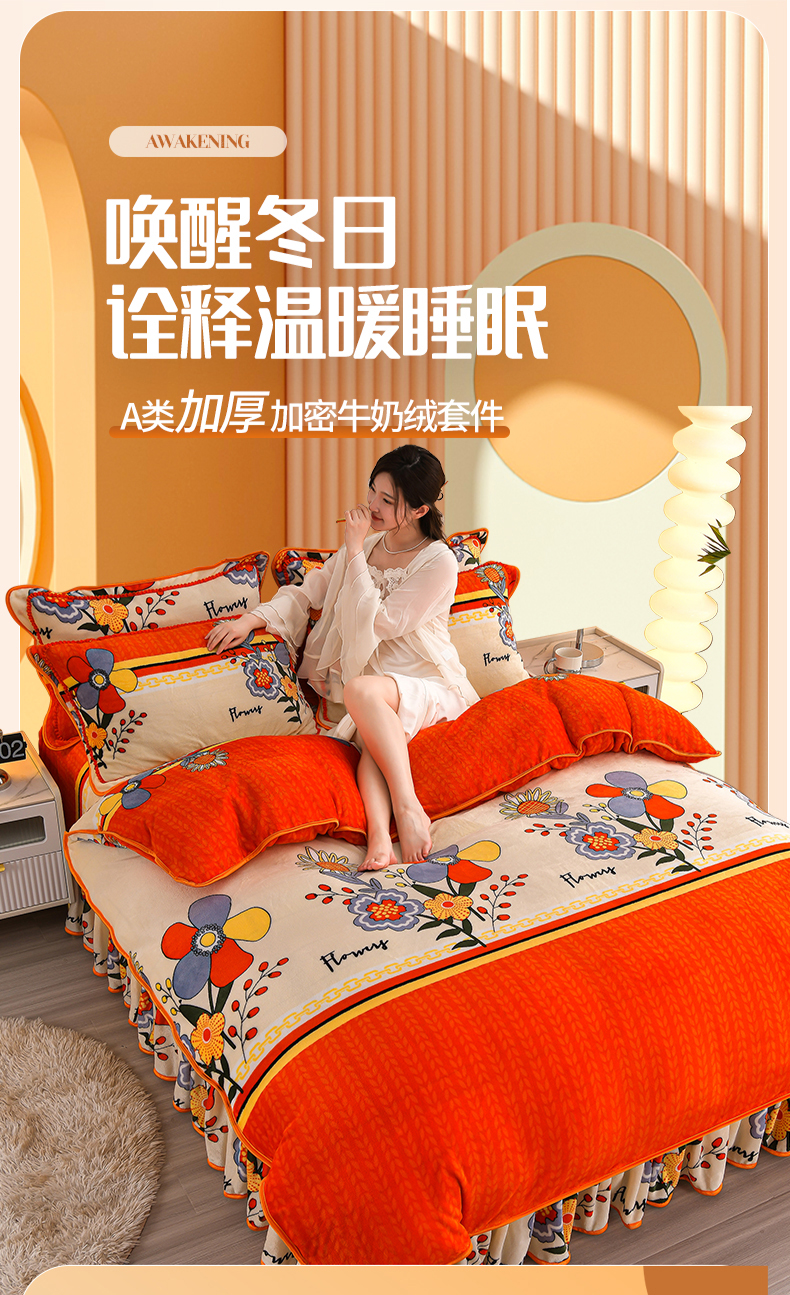 绒品壹家 2025新款电商直播爆款高克重7斤牛奶绒金貂绒印花床裙款三件套四件套 轻奢艾玛,轻奢艾玛